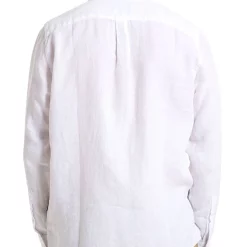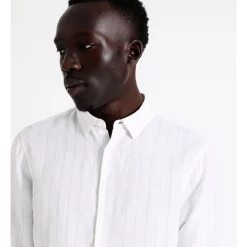 Hot Sale 🛒 Blaq Leo Stripe Long Sleeve Linen 👚 Shirt In White 😀
