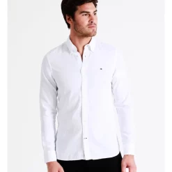 Outlet 💯 Tommy Hilfiger 1985 Flex Oxford Long Sleeve 👕 Shirt In White ✔️