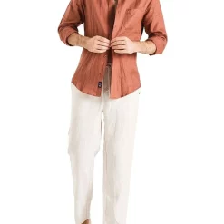 Outlet 🔔 Coast Clothing Co Long Sleeve Linen 👚 Shirt In Burnt Orange 😍