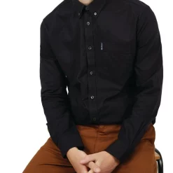 Buy 👍 Tommy Hilfiger Premium Linen Long Sleeve 👕 Shirt In Black 🤩