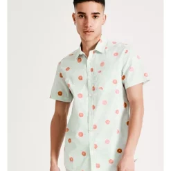 Top 10 😍 Kenji Grapefruit Textured Convo Print Short Sleeve 👚 Shirt In Green 😀