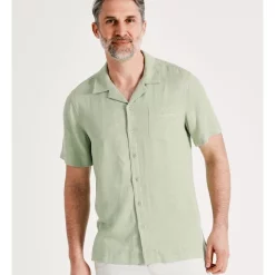 Wholesale 🥰 Gazman Linen Blend Leaf Print Short Sleeve 👕 Shirt In Sage ⌛
