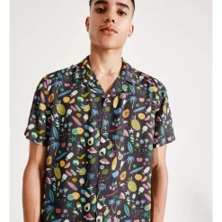Top 10 🛒 Kenji Peace Trip Print Short Sleeve Rayon 👕 Shirt In Black ⌛