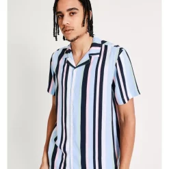 Wholesale ⌛ Kenji Lebowski Stripe Short Sleeve Rayon 👕 Shirt In Assorted ⌛
