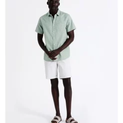 New ❤️ Blaq Aidan Geo Print Short Sleeve Relaxed 👕 Shirt In Sage 🤩
