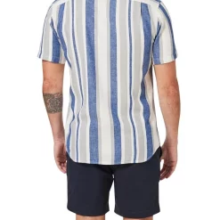Hot Sale ✔️ Kenji Weekend Bender Printed Short Sleeve Linen Blend 👕 Shirt In White 😉