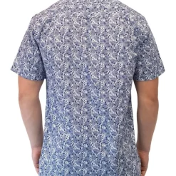 New 🌟 Raging Bull Leaf Print Poplin Short Sleeve 👕 Shirt In Blue/White 🌟