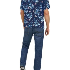 Outlet 😍 Jack & Jones Aloha Floral Short Sleeve 👕 Shirt In Navy Blazer 👏