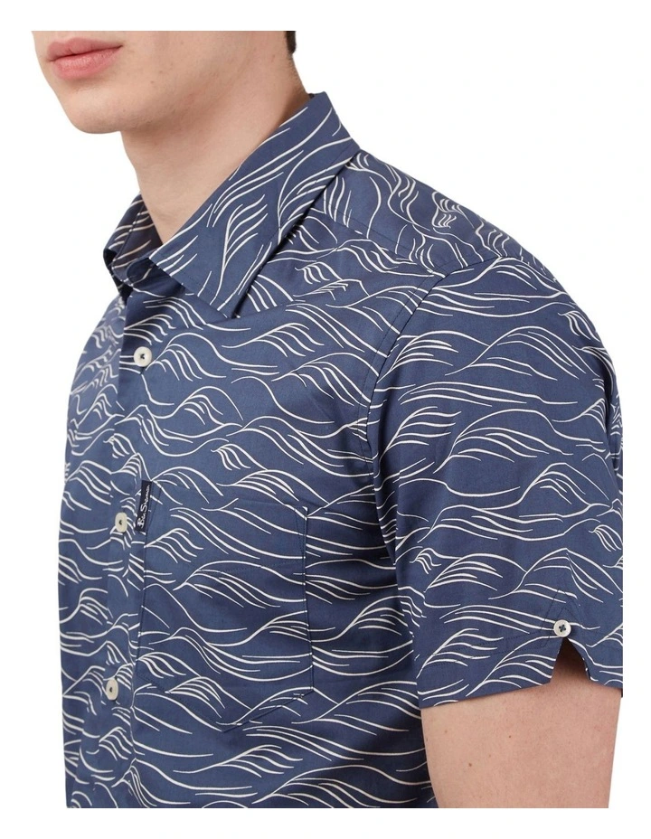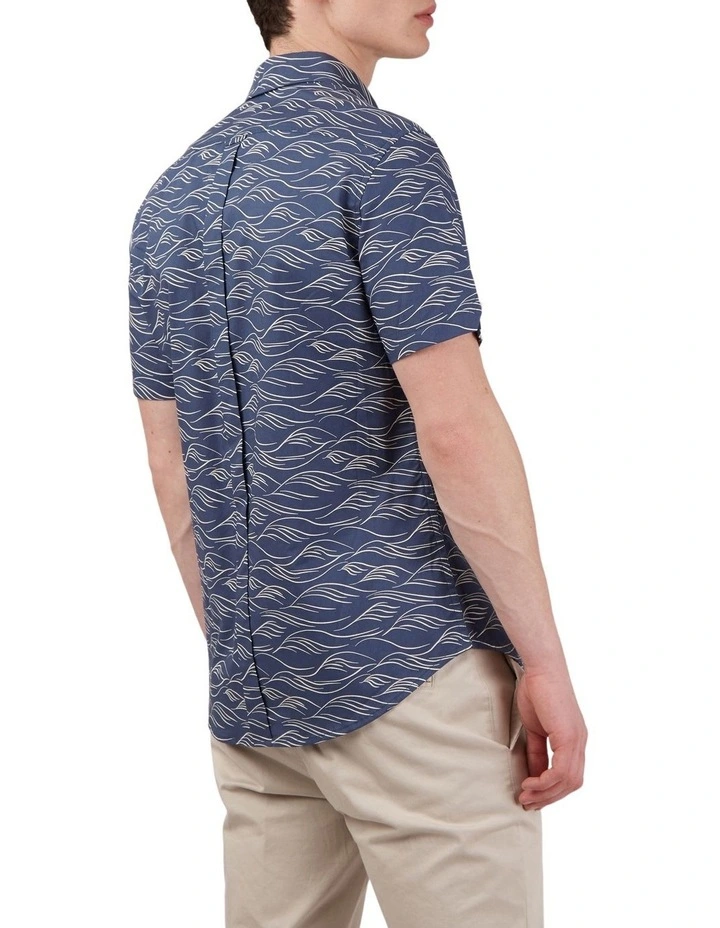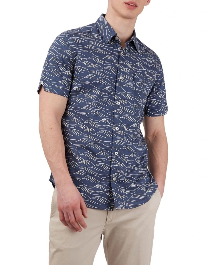 A short sleeve shirt designed in a tonal wave print that comes in a regular fit and made from 100% cotton.Β