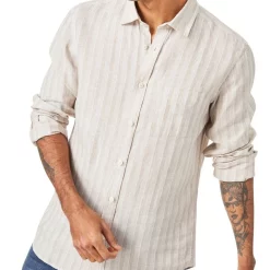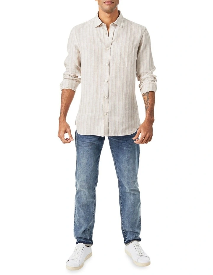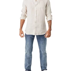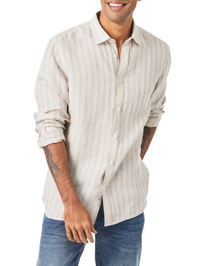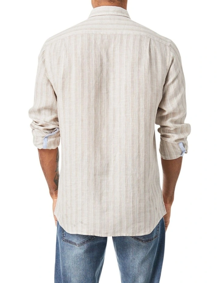 In the summer heat, you might be looking for clothing that is both comfortable and stylish. The Dominic Long Sleeve Linen Stripe Shirt is the perfect option to keep you cool while still looking put together. Made from soft, woven linen, this quick-drying shirt is the perfect fit for long days.