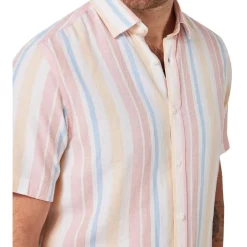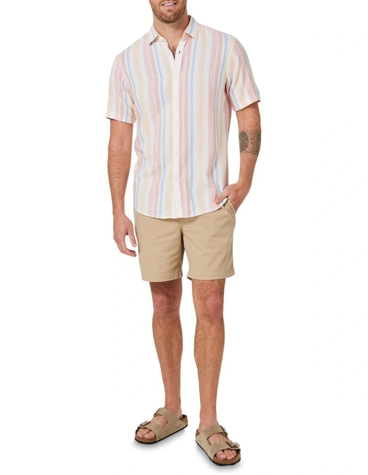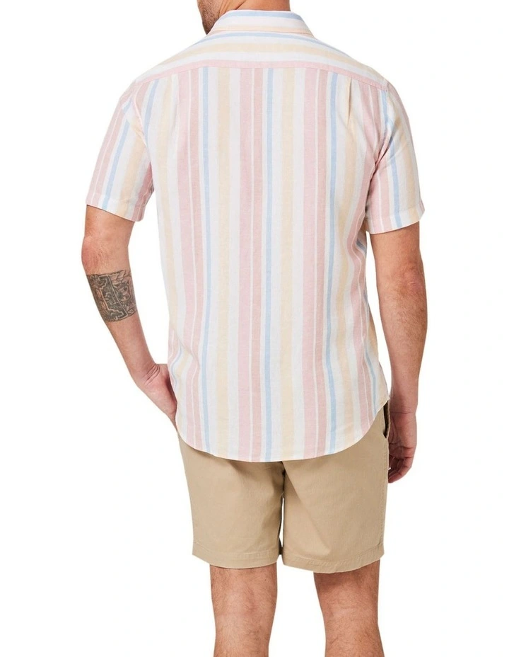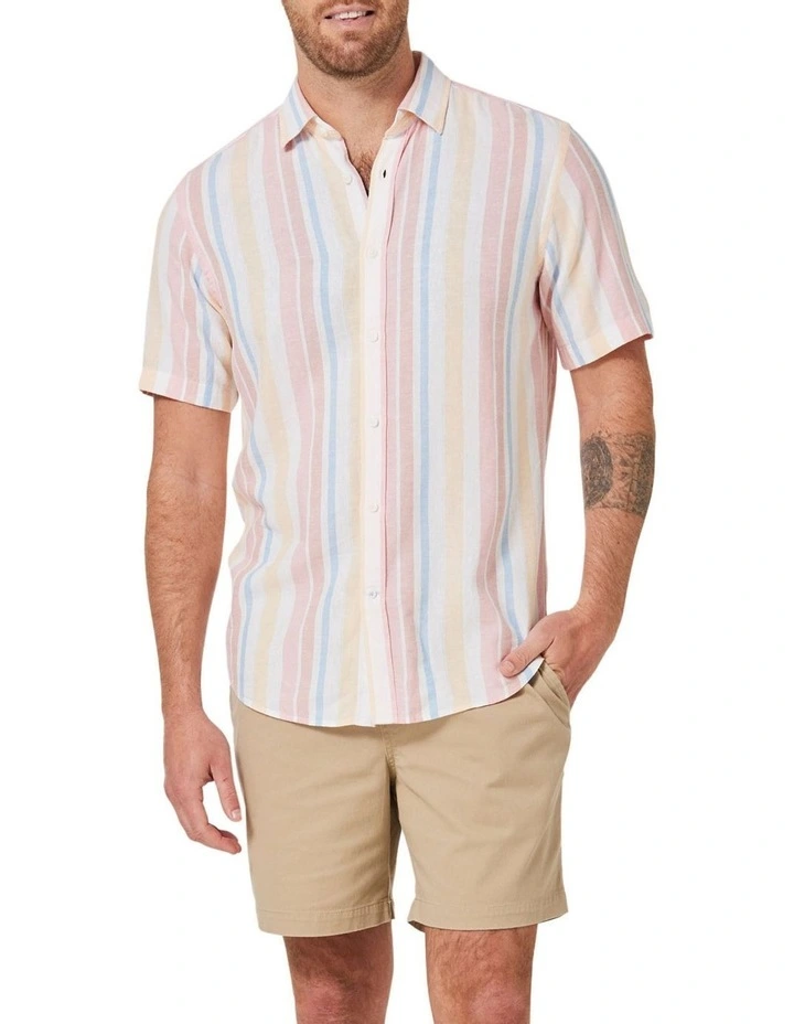 Pastel stripes and linen fabric make the Haven Short Sleeve Linen Blend Shirt a winner for casual and comfortable summer dressing. Whether you’re having a cocktail at a rooftop bar or lining up for a snag at the hardware store, this shirt is the perfect option.