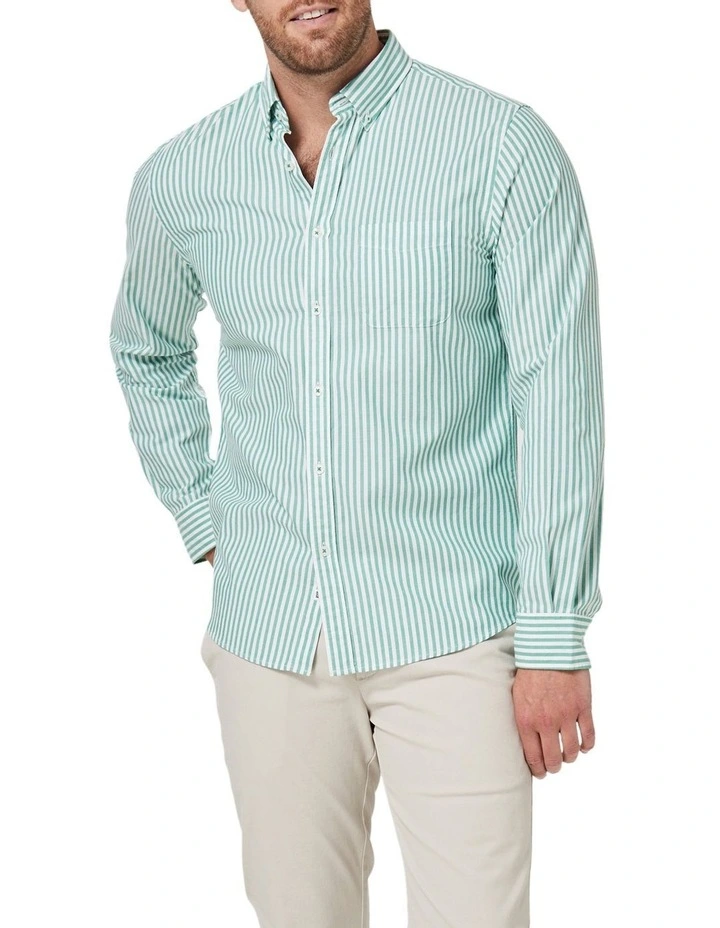 Bring on the workday, the pub lunch, the walk home from station with the Judd Long Sleeve Stripe Shirt. Made from oxford cotton, this striped shirt is breathable, durable and crease-resistant, so you’ll be comfortable all day and all night long.