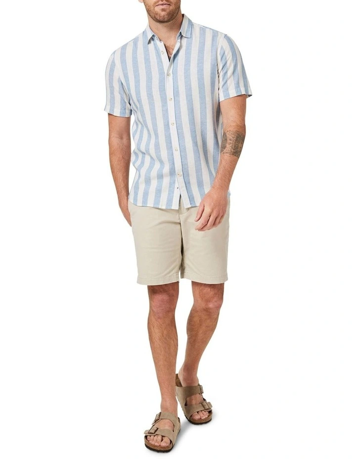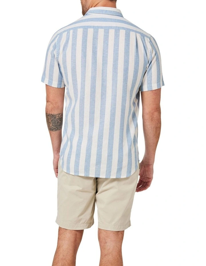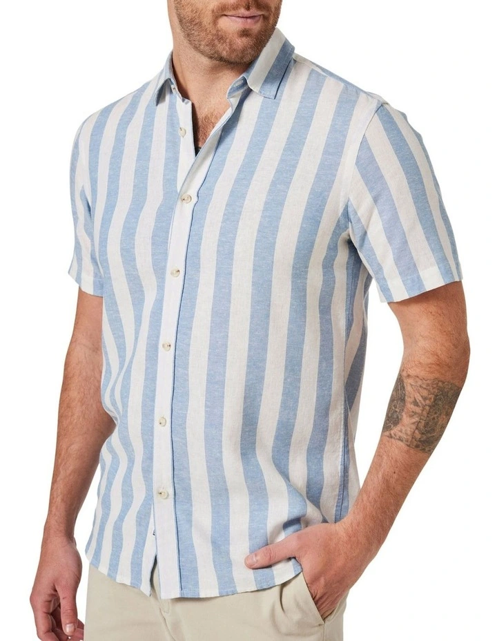 The Leon Short Sleeve Linen Blend Shirt is a beautiful shirt for summer. Featuring short sleeves, a soft linen blend fabric, and a subtle stripe design, it is perfect for a hot day.