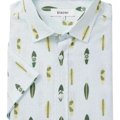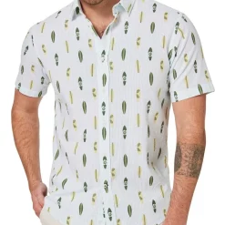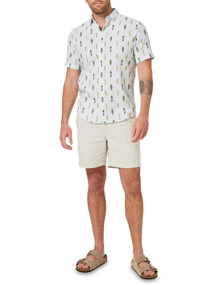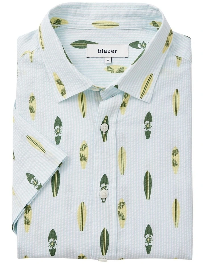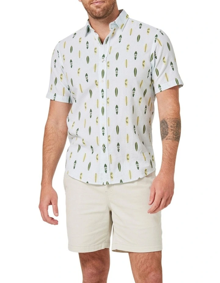 Meet your new party shirt! The Miami Short Sleeve Print Shirt is made from an easy wash-and-wear seersucker cotton and features a playful surfboard print. Wear it with shorts for your most relaxed and comfortable outfit this summer.