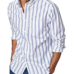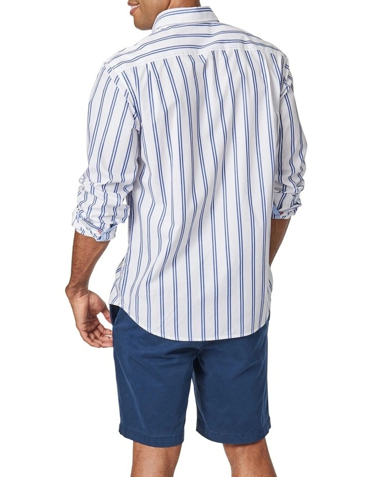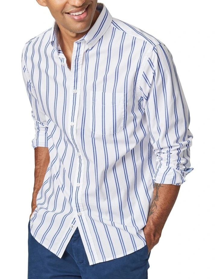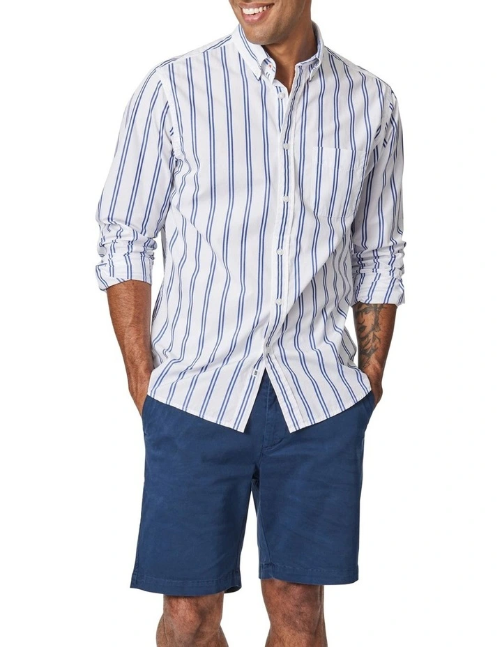 The Preston Shirt is a classic stripe design shirt that you can dress up or down. Made from breathable cotton poplin, this shirt is super soft and breathable – perfect for moving around freely during the day.