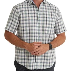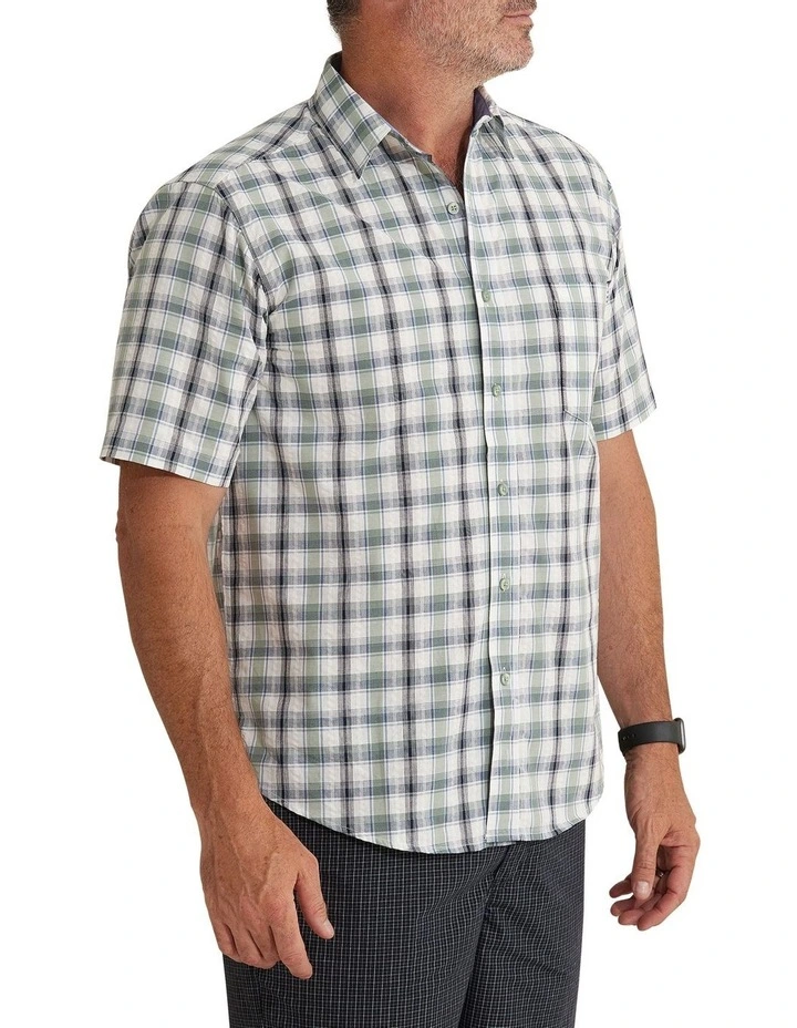 This 100% Cotton Seersucker shirt combines the on trend green colour Trellis with classic grey and neutral highlights to bring you the ultimate check design! This fabric will help you keep your cool all summer long!