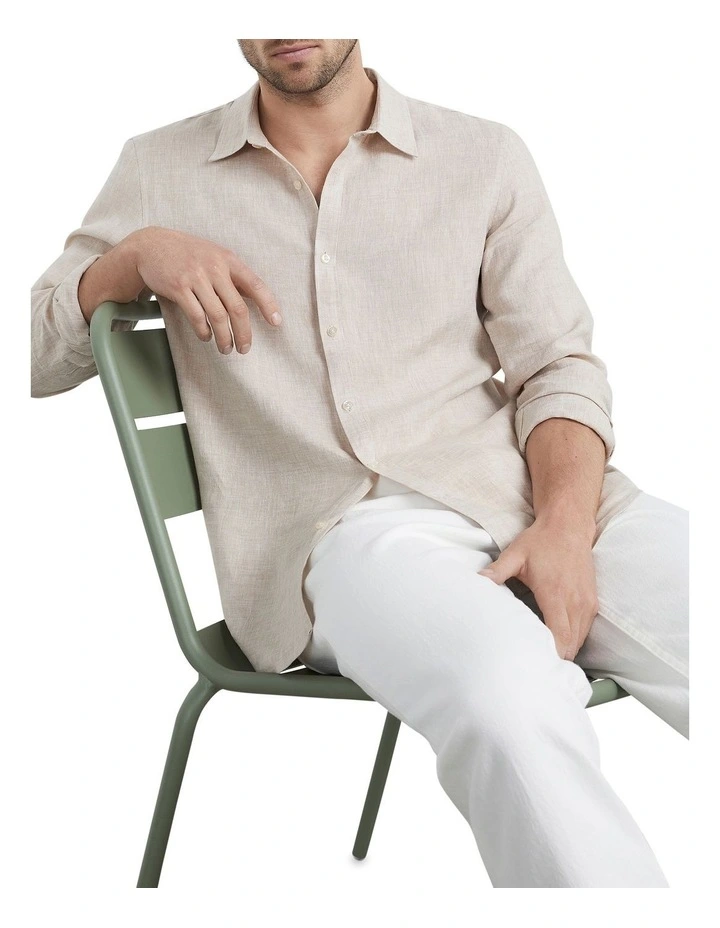 Our Linen Classic Fit Shirt offers a casual and comfortable style. Made from soft and breathable 100% linen fabric, this shirt has long sleeves, a relaxed fit, curved hemline, and a back pleat detail. An updated relaxed fit for great everyday style. Wear with our Trucker Jacket and Destination T-Shirt. Model wearing our White, Birch and Smoke Blue colourways wears a size M. He usually wears a standard M and is 188cm tall.Model Wearing our Black, Khaki, Marine Blue, Oatmeal Melange, Light Blue Melange, Soft Khaki and Smoke Stripe colourways wears a size M. He usually wears a standard M and is 185cm tall.