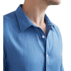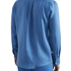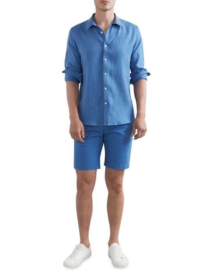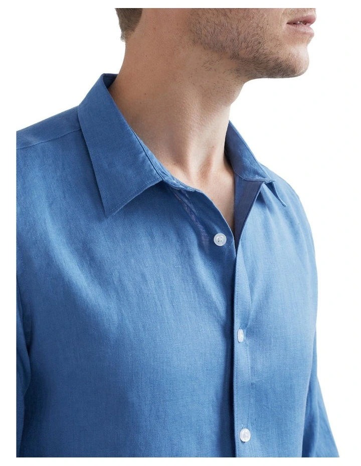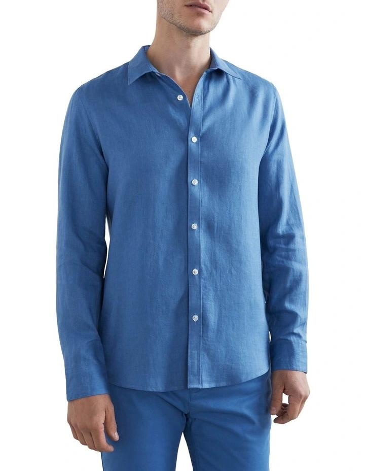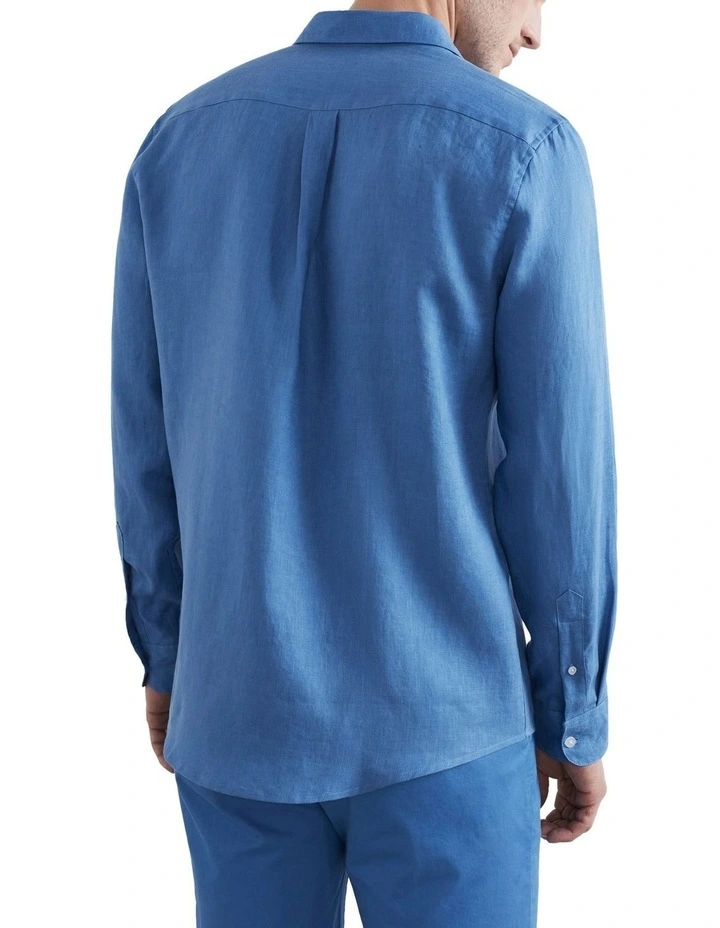 Our Linen Classic Fit Shirt offers a casual and comfortable style. Made from soft and breathable 100% linen fabric, this shirt has long sleeves, a relaxed fit, curved hemline, and a back pleat detail. An updated relaxed fit for great everyday style. Wear with our Trucker Jacket and Destination T-Shirt. Model wears a size M. He usually wears a standard M and is 188cm tall.