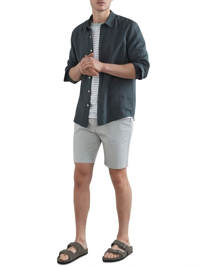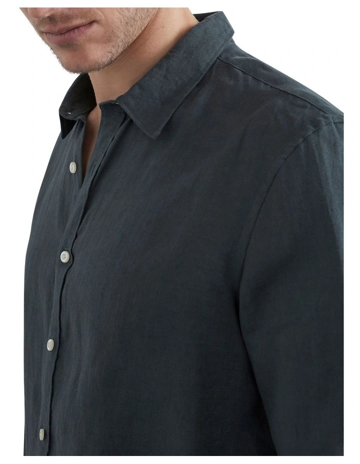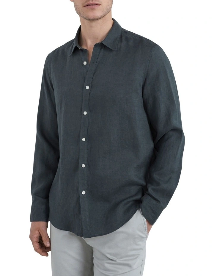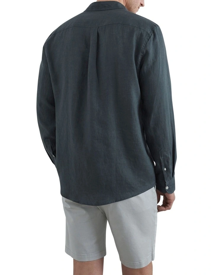 Our Linen Classic Fit Shirt offers a casual and comfortable style. Made from soft and breathable 100% linen fabric, this shirt has long sleeves, a relaxed fit, curved hemline, and a back pleat detail. An updated relaxed fit for great everyday style. Wear with our Trucker Jacket and Destination T-Shirt.Β