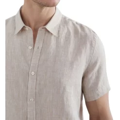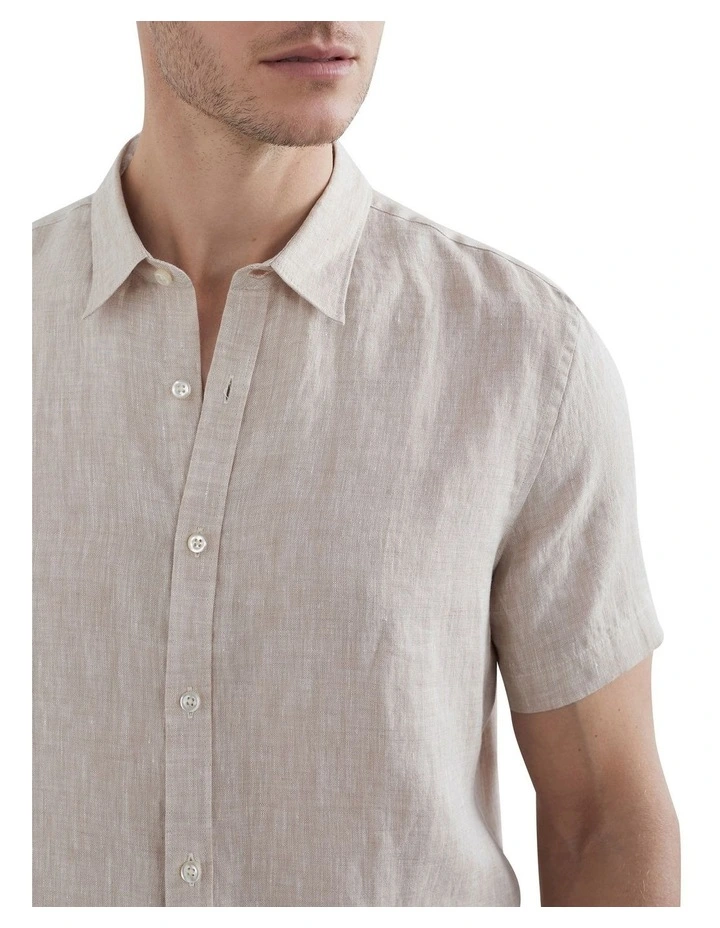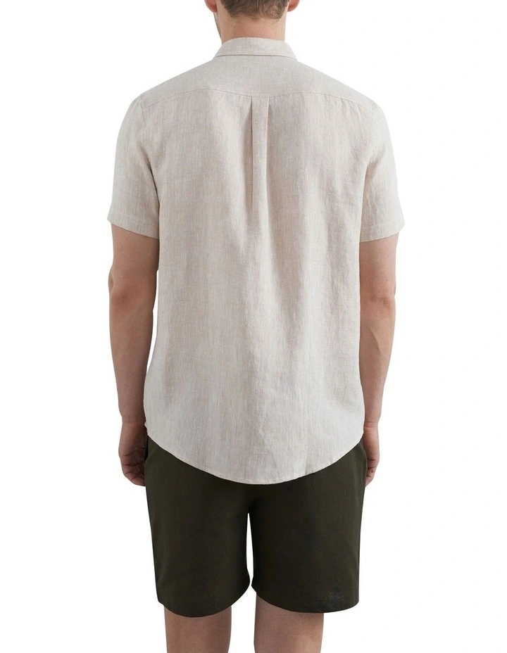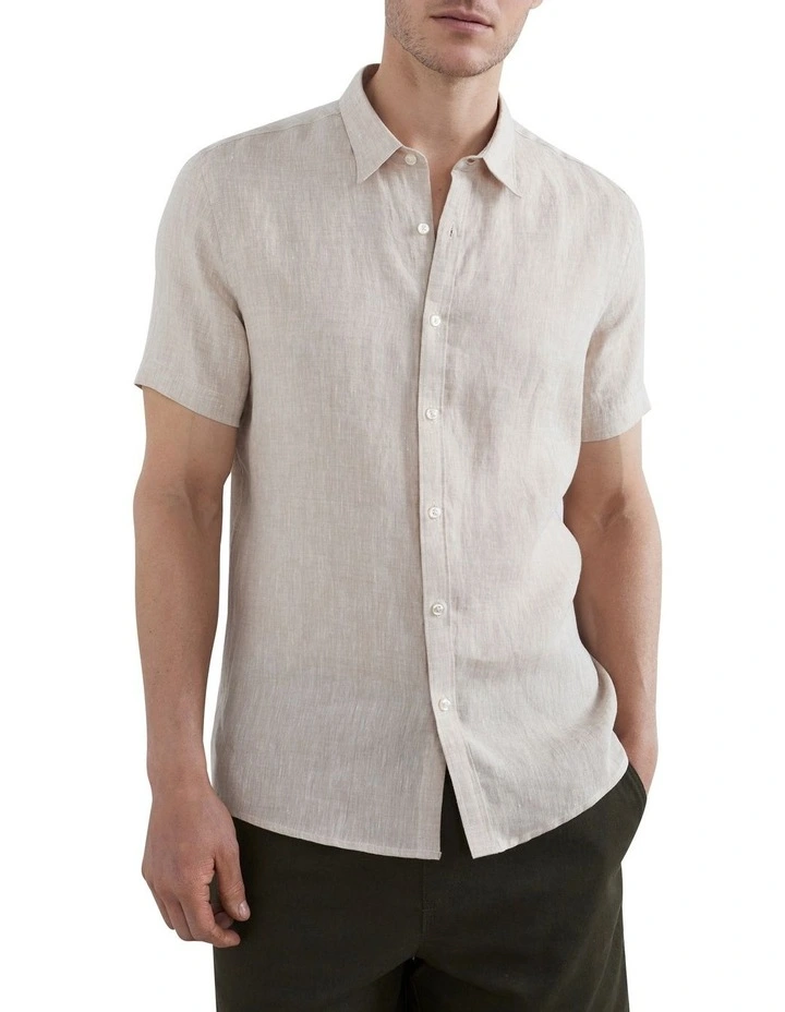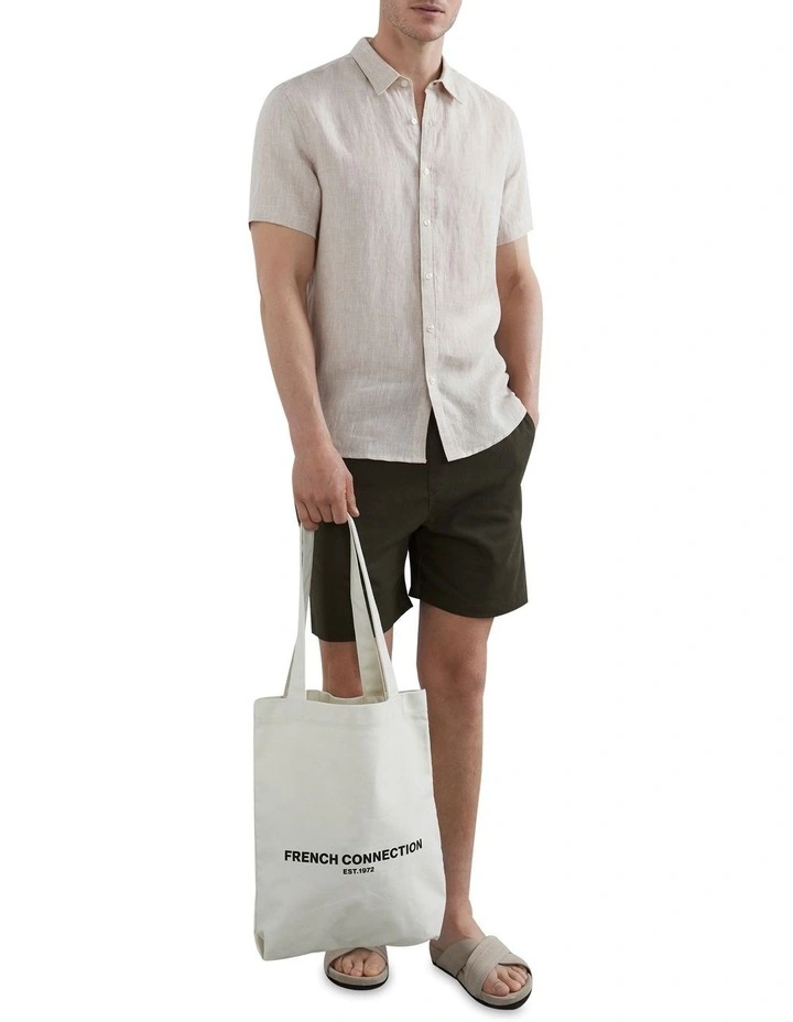 For effortless style, you can’t wrong with our Linen Classic Fit Shirt. Featuring an on-trend stripe and made from 100% linen, this button down shirt features short sleeves, a collar, and comfortable regular fit. Pair with our Textured Pull On Short and Reid Leather Crossover Slide. Our model is 187cm tall and wears a size M.
