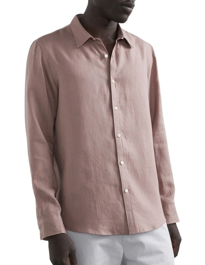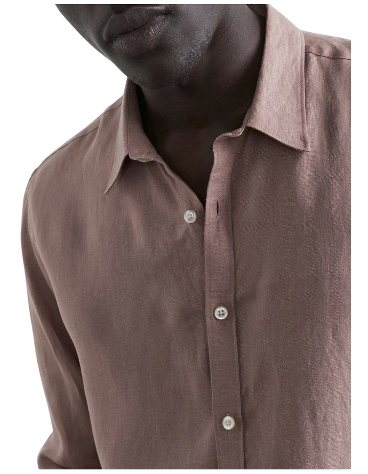 Our Linen Classic Fit Shirt offers a casual and comfortable style. Made from soft and breathable 100% linen fabric, this shirt has long sleeves, a relaxed fit, curved hemline, and a back pleat detail. An updated relaxed fit for great everyday style. Wear with our Trucker Jacket and Destination T-Shirt.