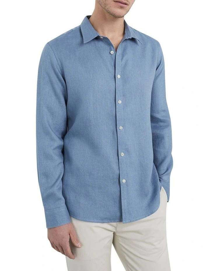 Our Linen Classic Fit Shirt offers a casual and comfortable style. Made from soft and breathableΒ linen fabric, this shirt has long sleeves, a relaxed fit, curved hemline, and a back pleat detail. An updated relaxed fit for great everyday style. Wear with our Trucker Jacket and Destination T-Shirt.Β