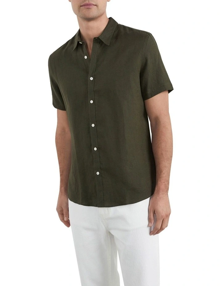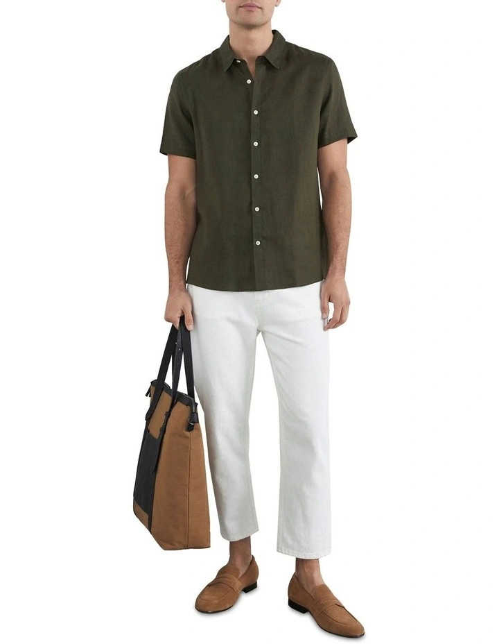 For effortless style, you can’t wrong with our Linen Classic Fit Shirt. Featuring an on-trend stripe and made from 100% linen, this button down shirt features short sleeves, a collar, and comfortable regular fit. Pair with our Textured Pull On Short and Reid Leather Crossover Slide. Our model is 187cm tall and wears a size M.