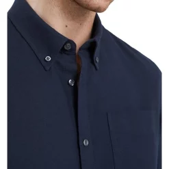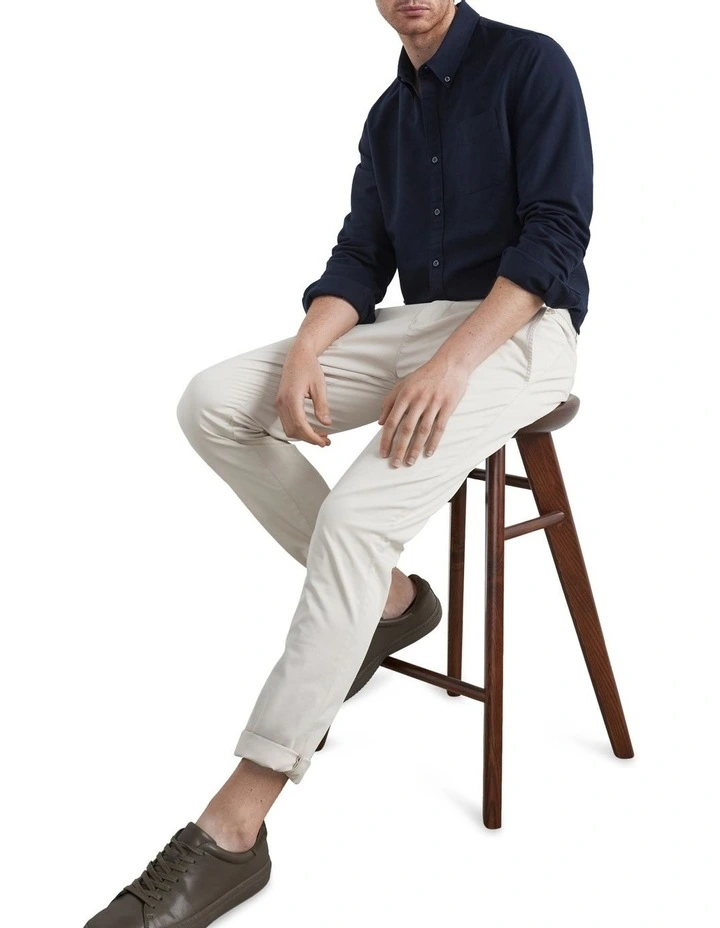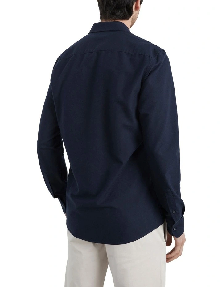 Add the Oxford Slim Fit Shirt to your wardrobe. Made from 100% cotton, this shirt has a slim fit, curved hemline, and single chest pocket. Wear with our slim chino pant and crew neck tee.Β