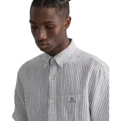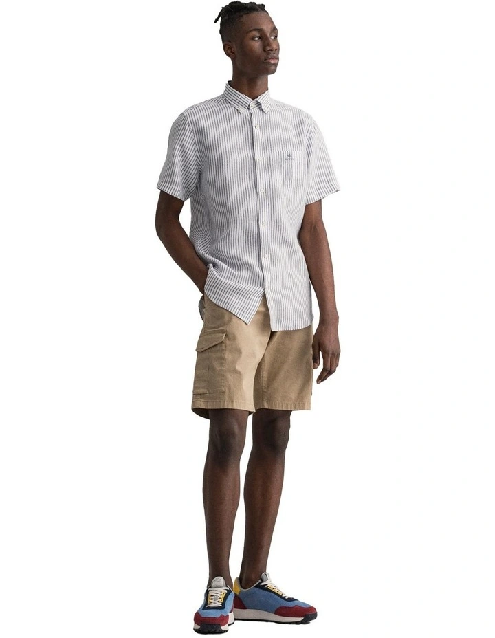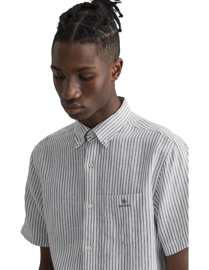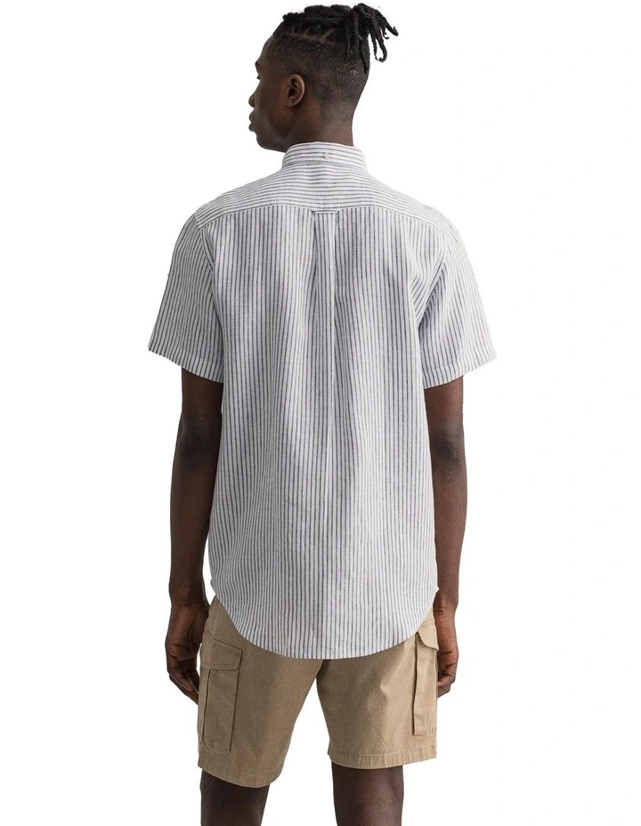 The Regular Fit Short Sleeve Stripe Linen Shirt is made from 100% linen, making it light, airy and perfect for summer. Linen is a naturally breathable fiber, and has a crisp look that lends itself to smart casual summer events, like garden parties. With a preppy stripe, this short-sleeved shirt is made for your everyday.