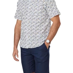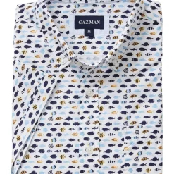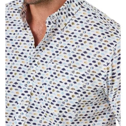 This light weight cotton shirt features a stylish fish pattern that makes for a fun and easy weekend option. This regular fitting shirt is made from a soft cotton that pairs well with denim for a casual off duty style.