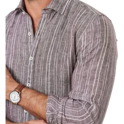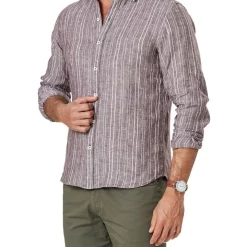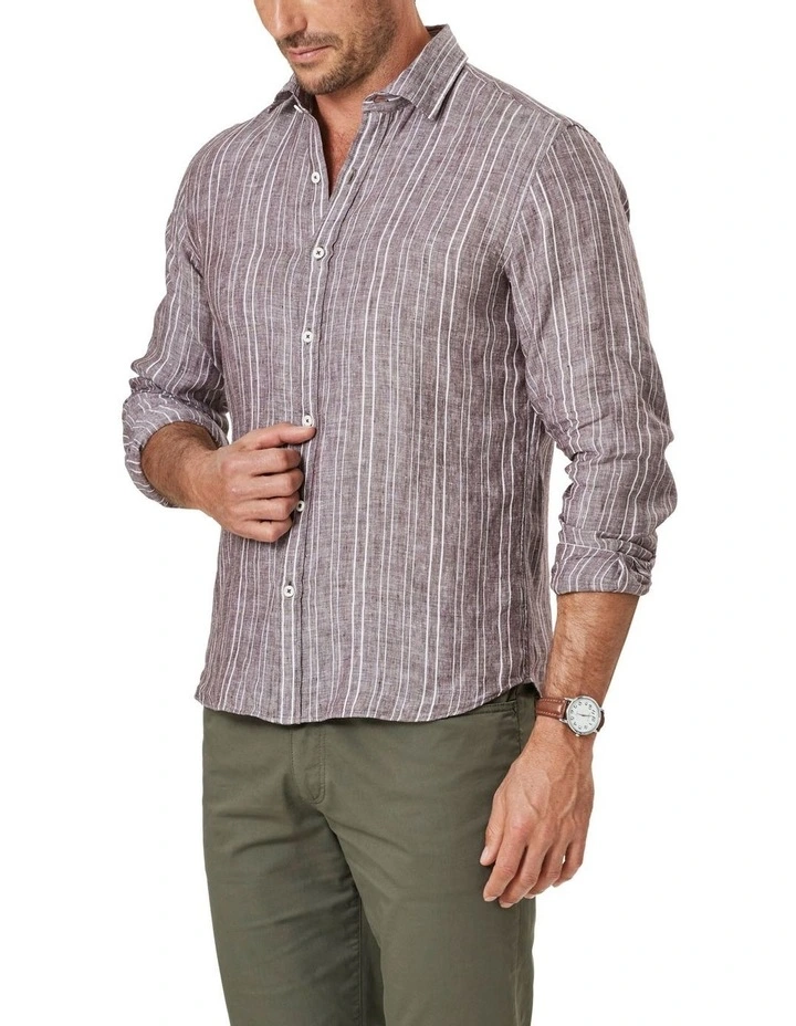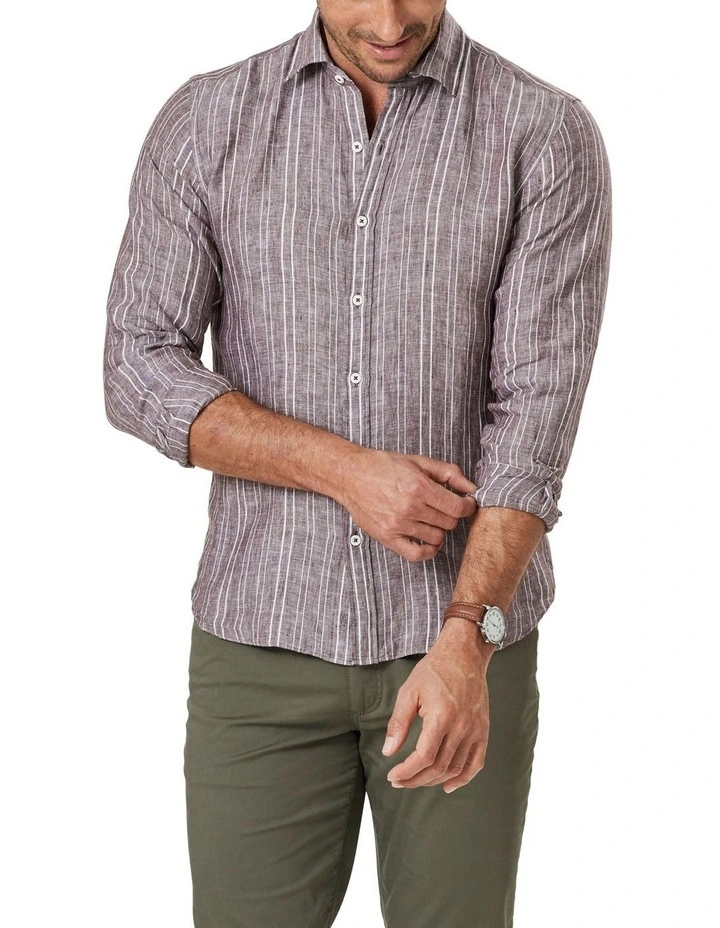 This soft washed linen shirt is extremely lightweight, breathable and comfortable. Constructed from french linen with a subtle pattern, our tailored fit linen stripe shirt makes for smart and easy outfitting.