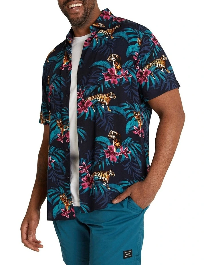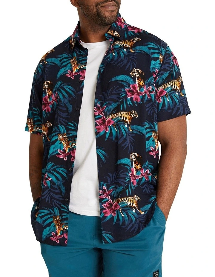 Coupon π Kenji Desert Garden Print Short Sleeve Rayon π Shirt In Navy π