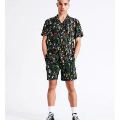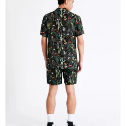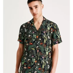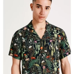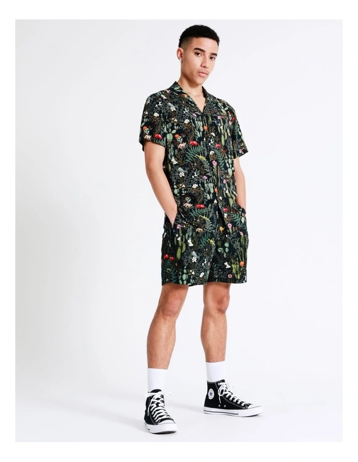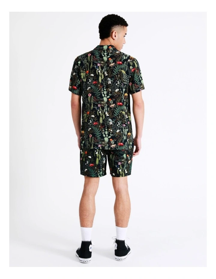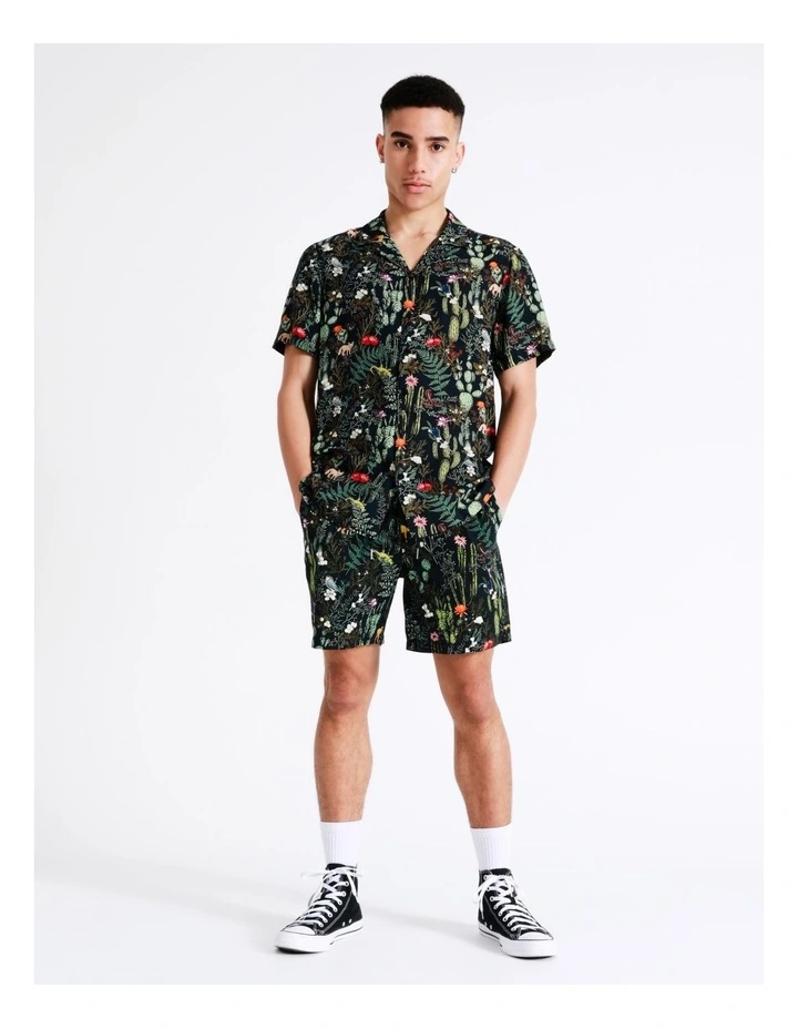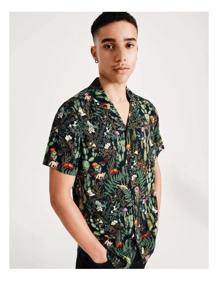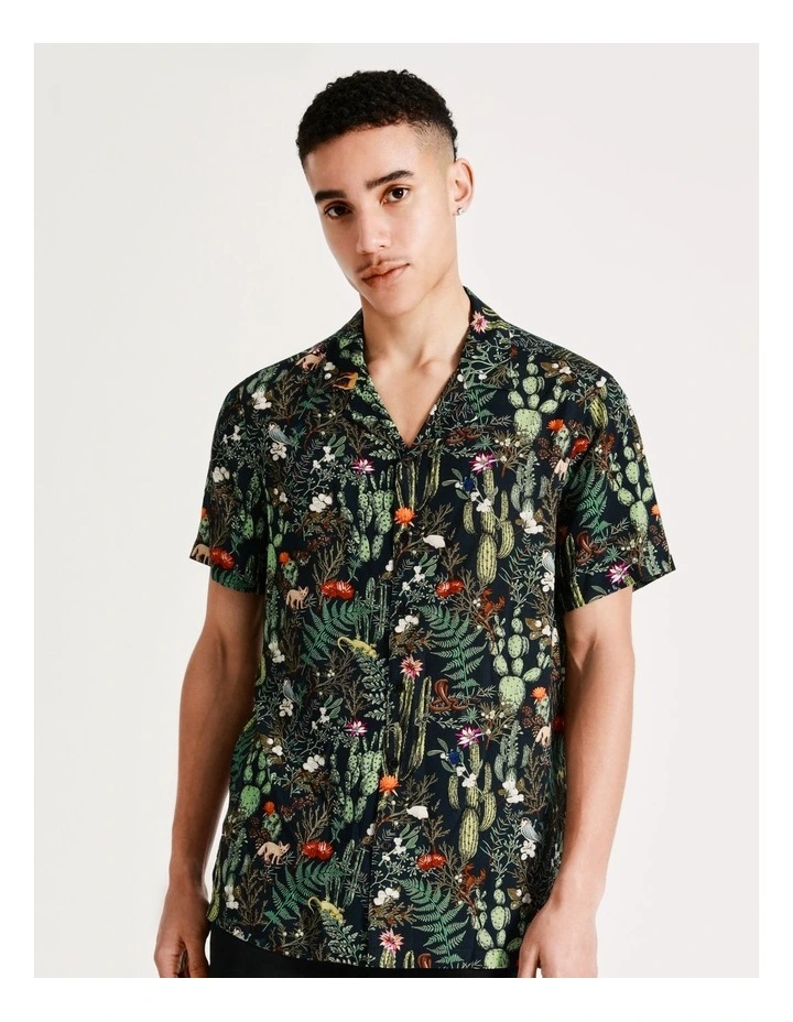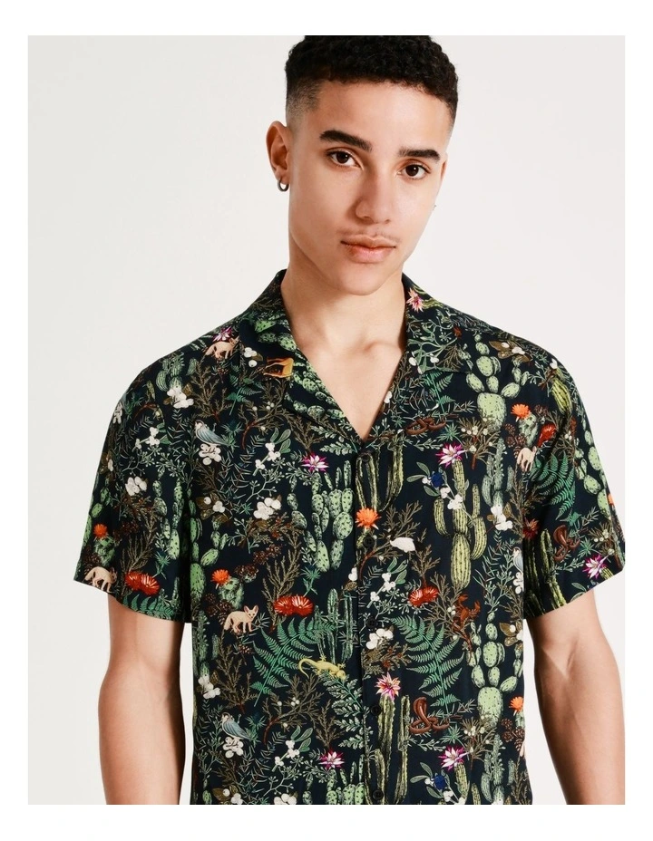 KenjiΒ Desert Garden Print Short Sleeve Rayon Shirt in Navy