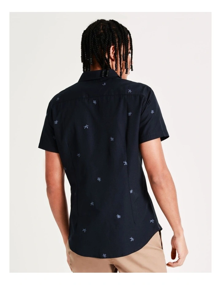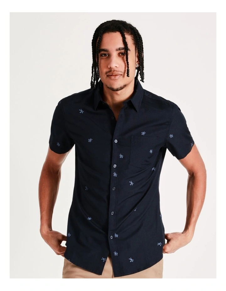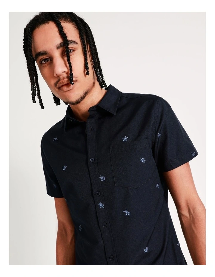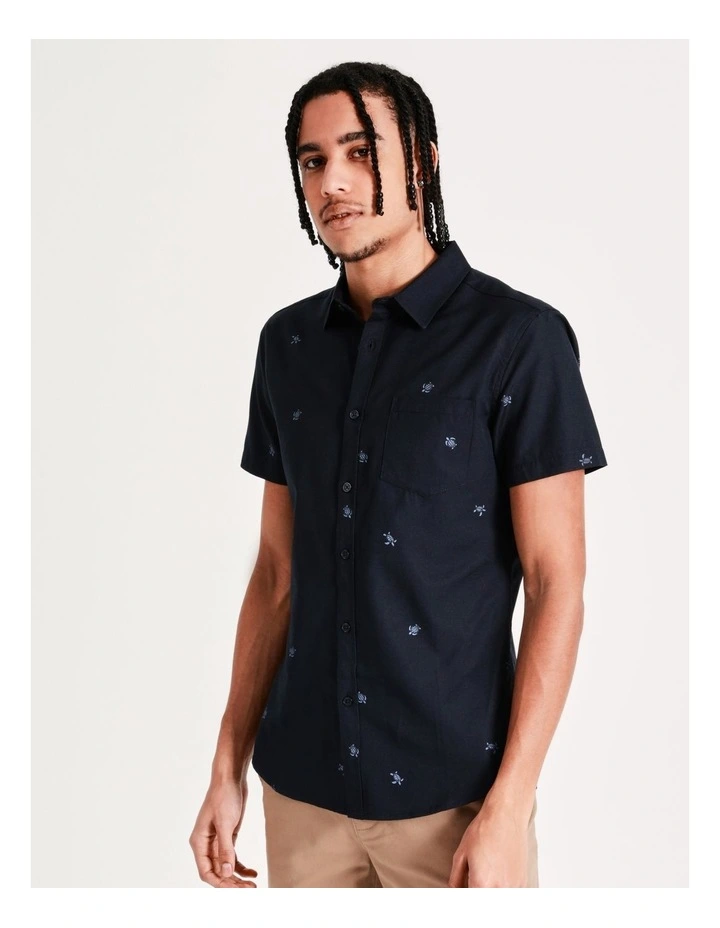 Kenji Joe Convo Print Short Sleeve Shirt In Navy