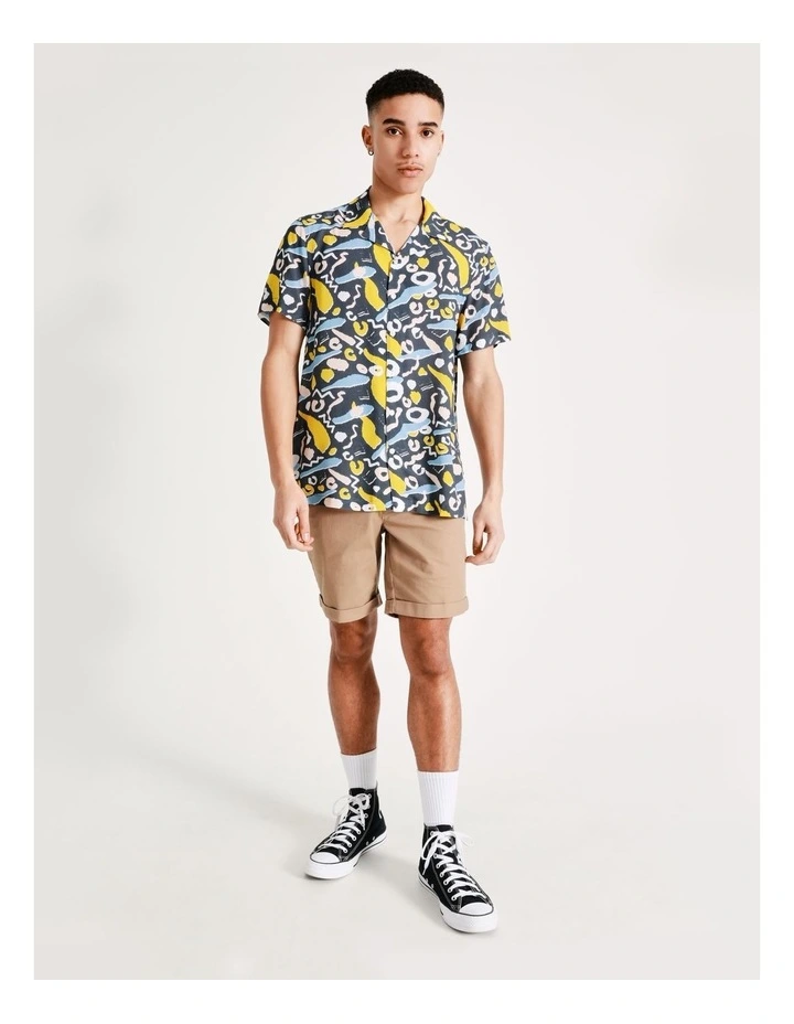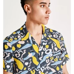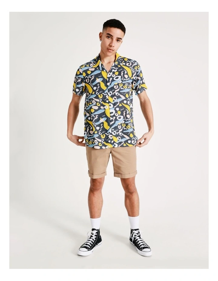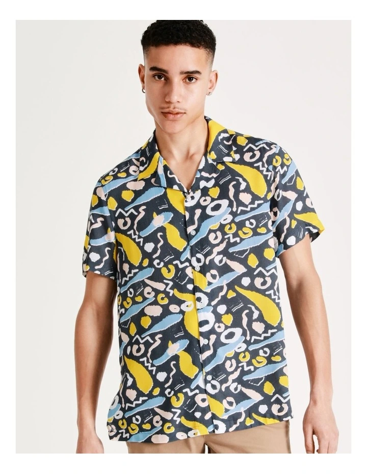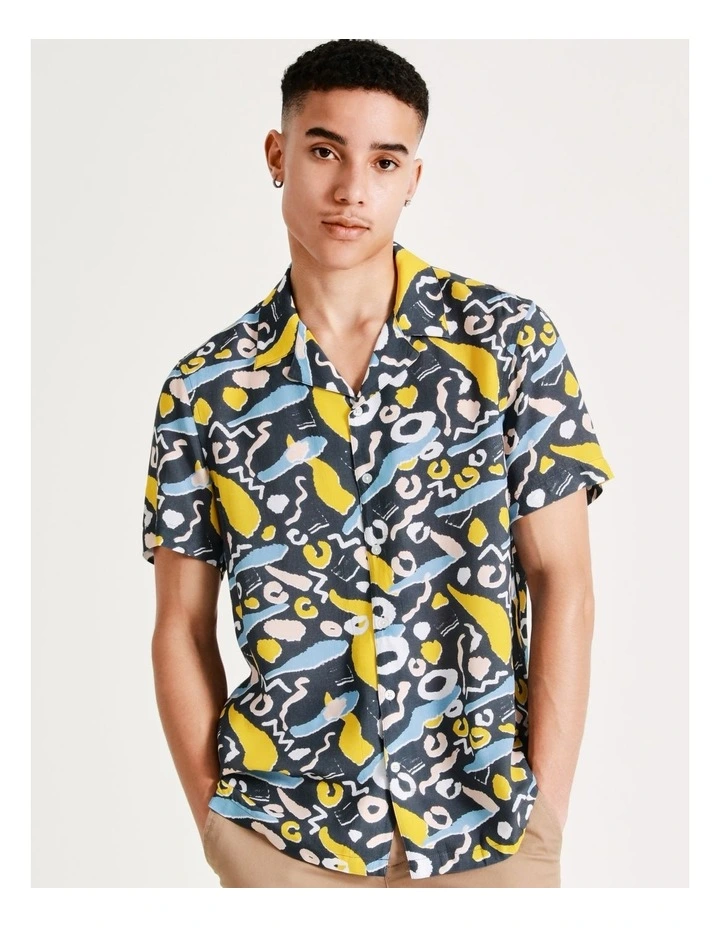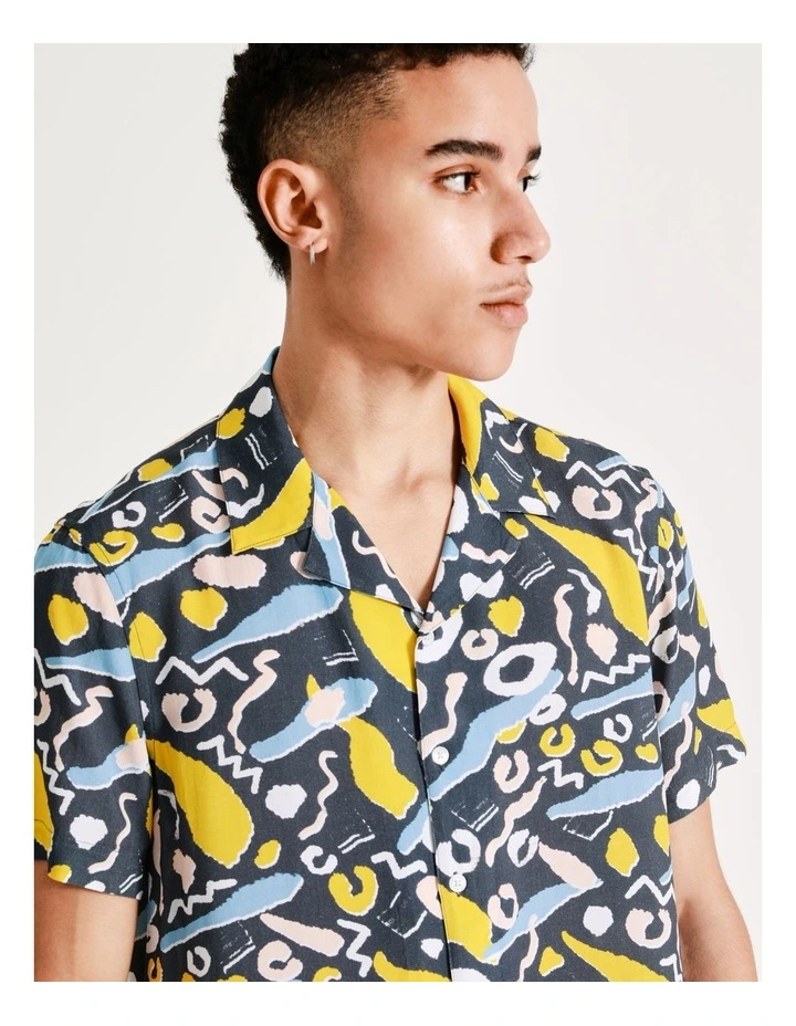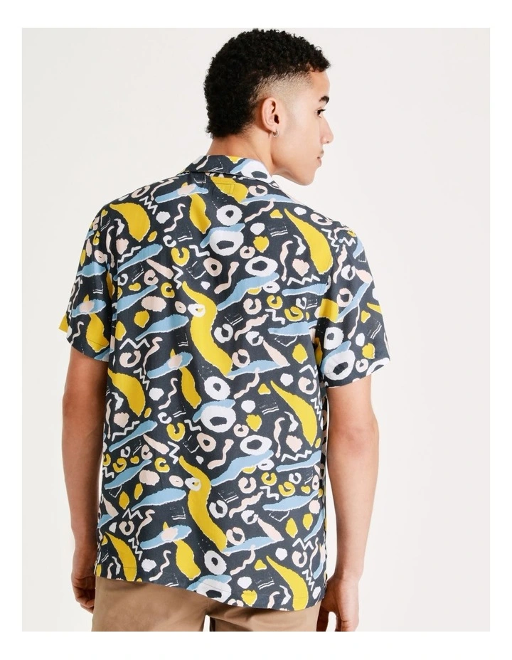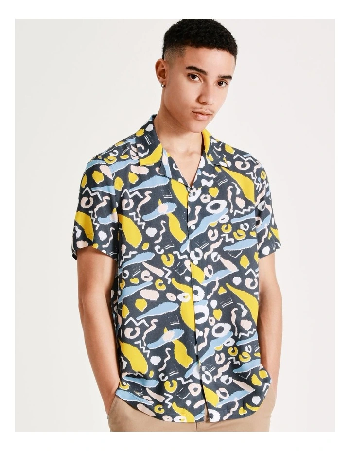 KenjiΒ Kazimir Abstract Print Short Sleeve Rayon Shirt in Blue