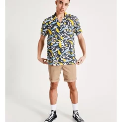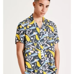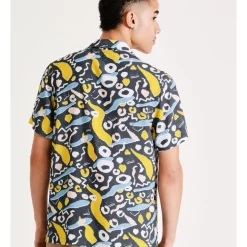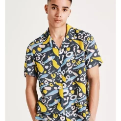 Style a bold look with a printed short sleeve shirt. This shirt has a button up front with a statement, all-over print that is sure to turn heads. Wear with your best denim for an elevated casual look.Β