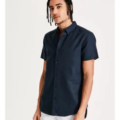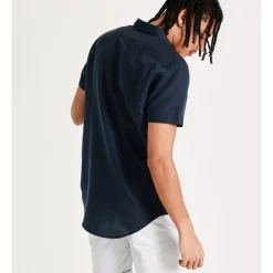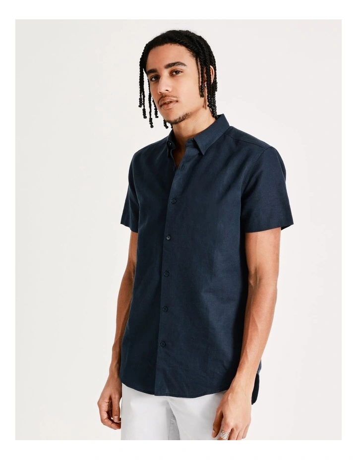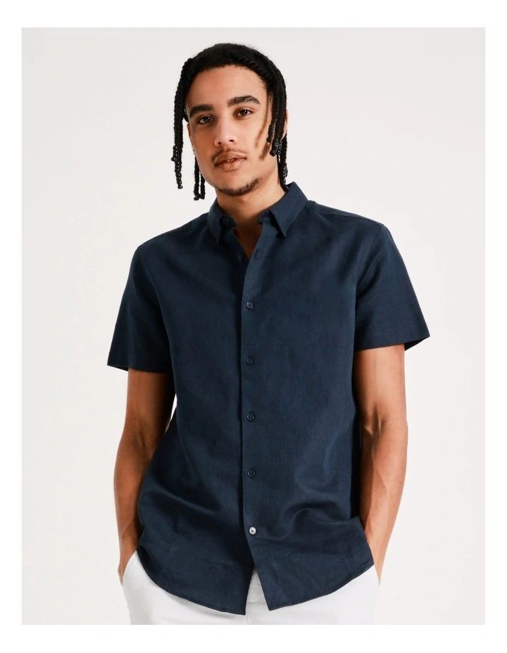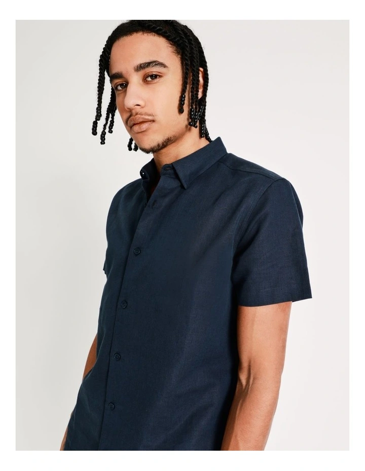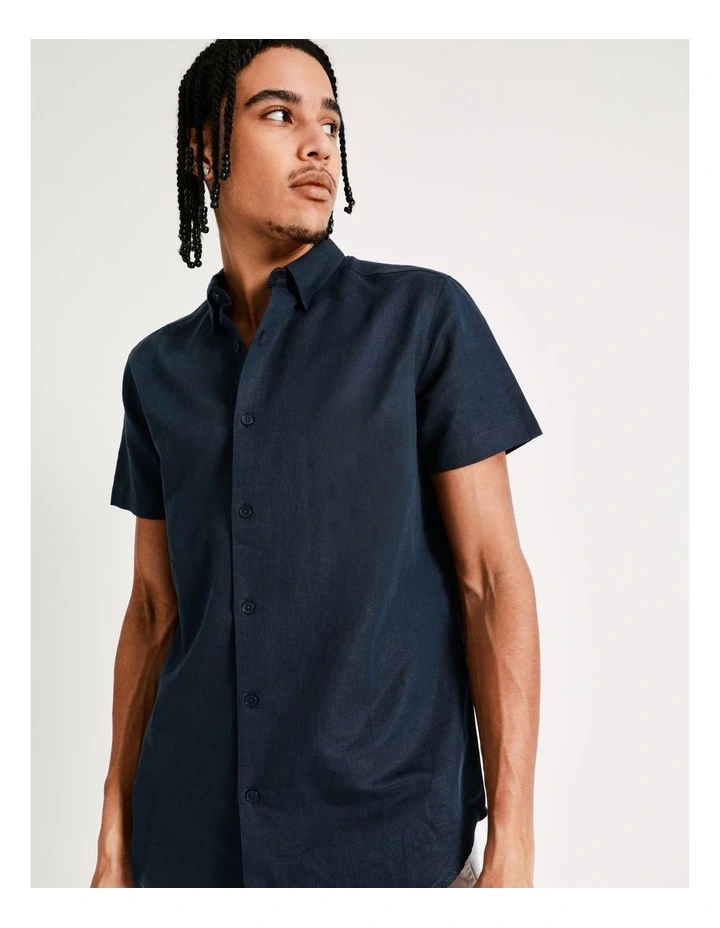 Deals 𧨠Reserve Bodega Linen Button Down Short Sleeve π Shirt In Dark Navy π