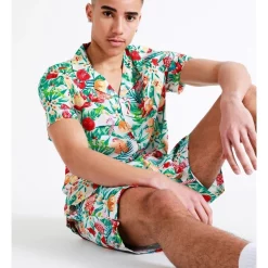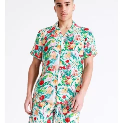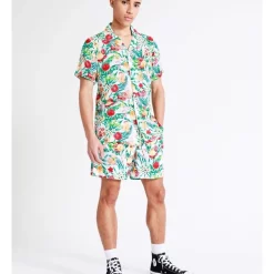 KenjiΒ Mistletoe Print Short Sleeve Rayon Shirt in Green