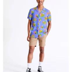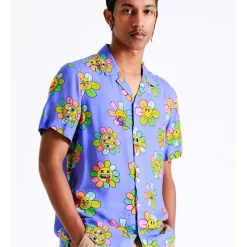 Make a statement in a short sleeve shirt. This shirt has a button up opening with a bold, all-over print. Wear it with denim for an elevated casual look.Β