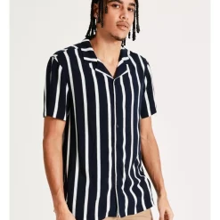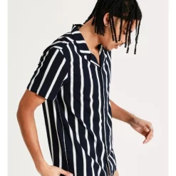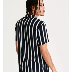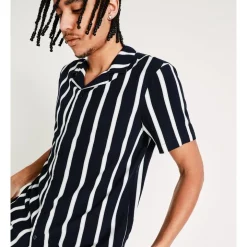 From festivals to casual Fridays, Kenji has you fitted. This stripe print is modern and can be easily paired with your favourite jeans. It sits in a regular fit and features a fold over collar.