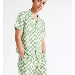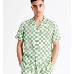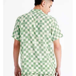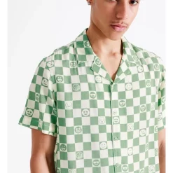 KenjiΒ Smiley Checkerboard Short Sleeve Rayon Shirt in Green