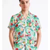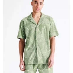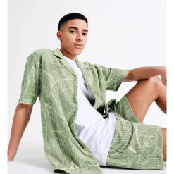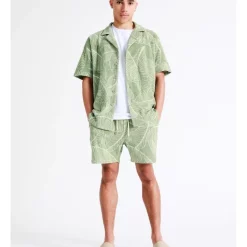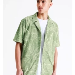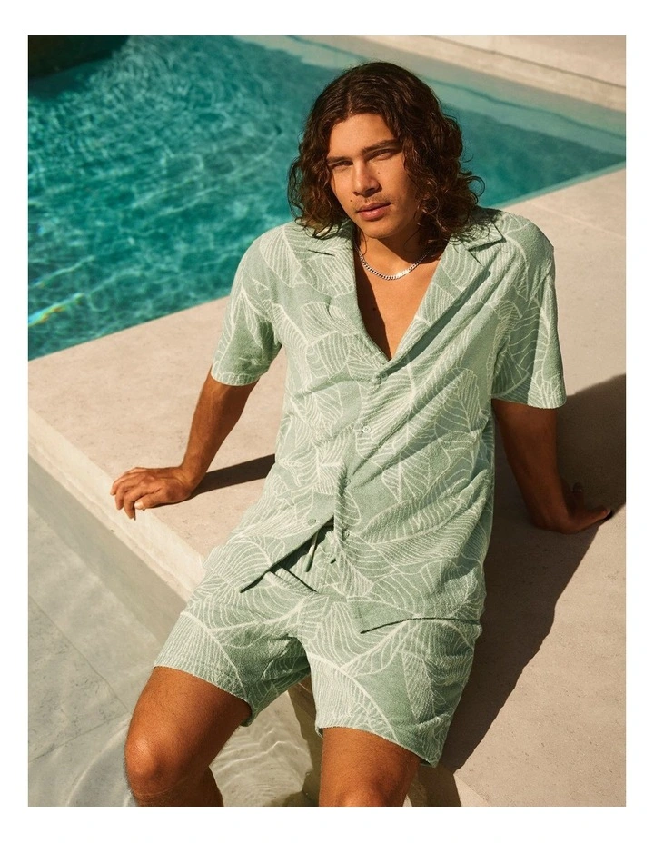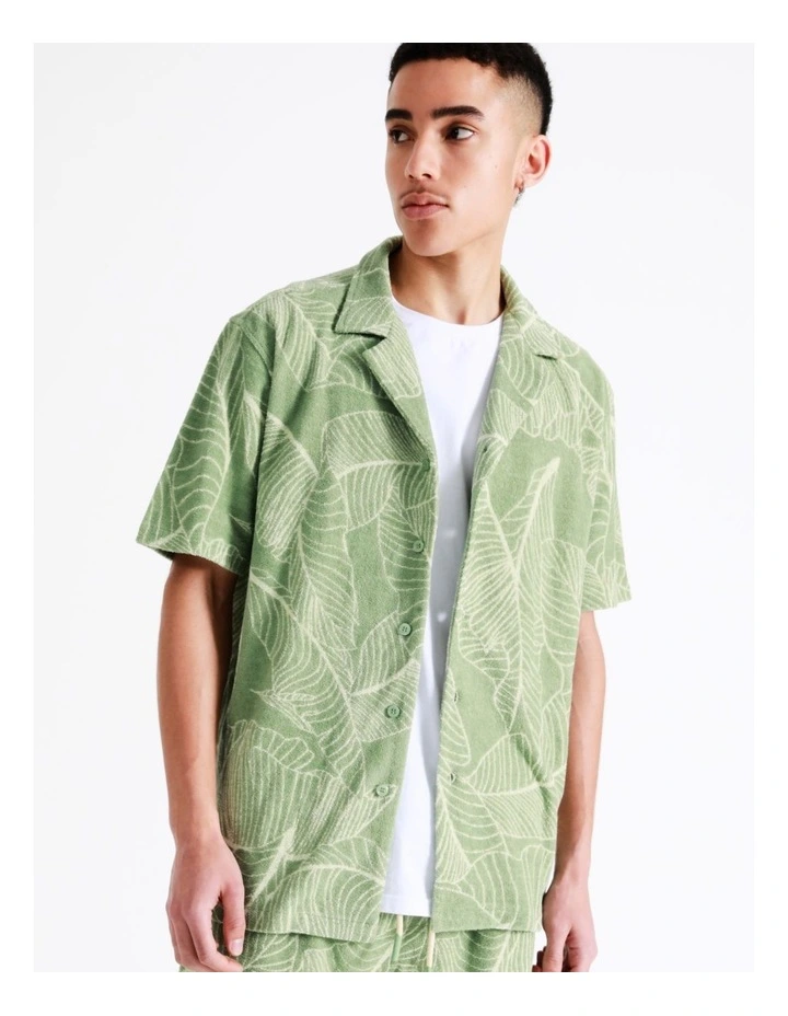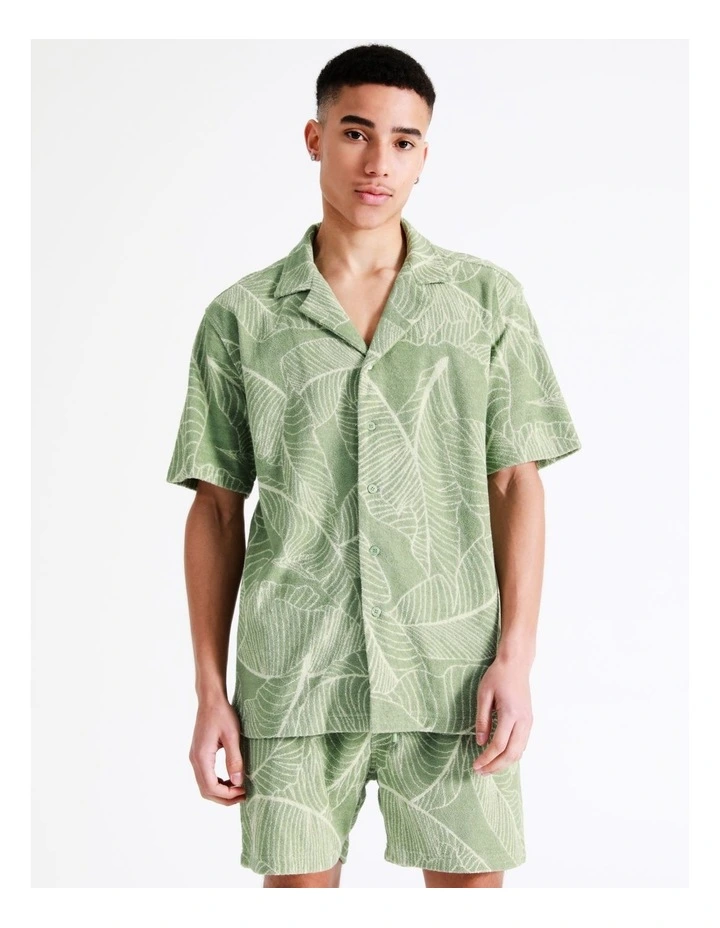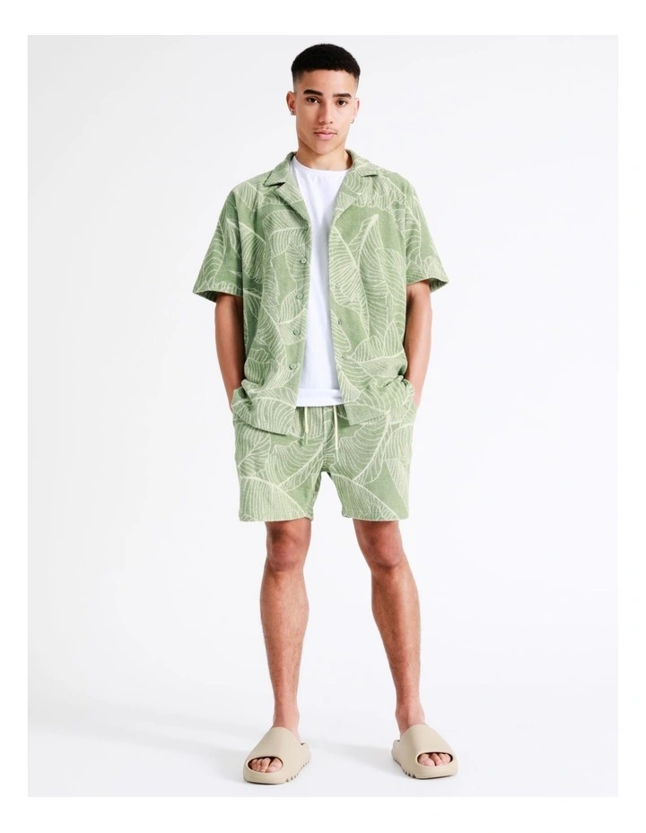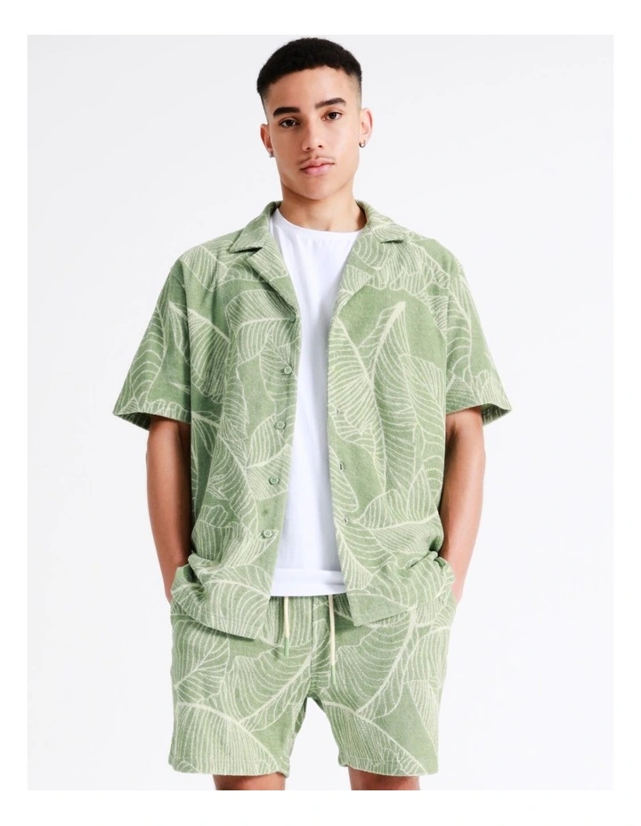 KenjiΒ Terry Towellin’ Jacquard Print Short Sleeve Shirt In Green