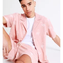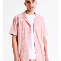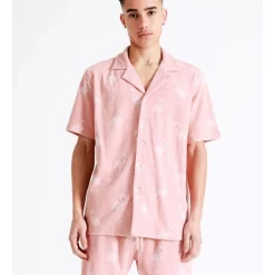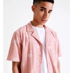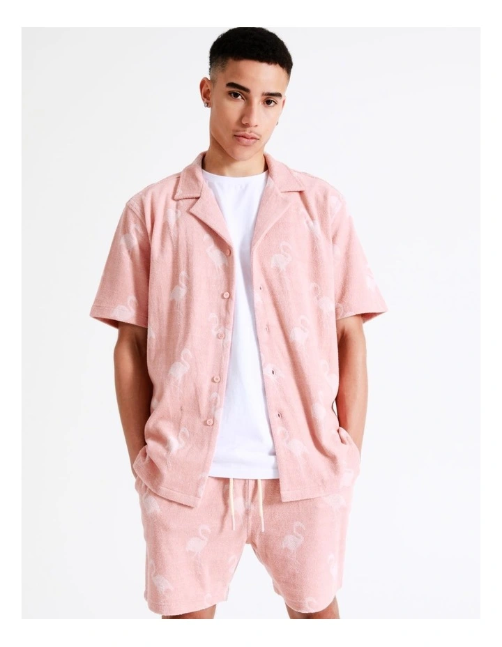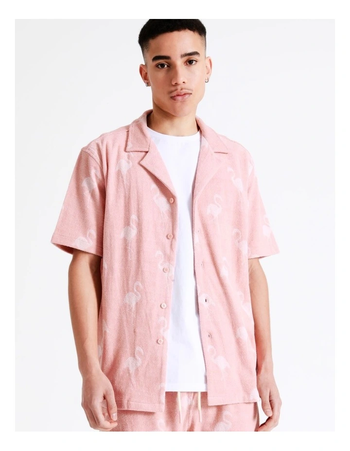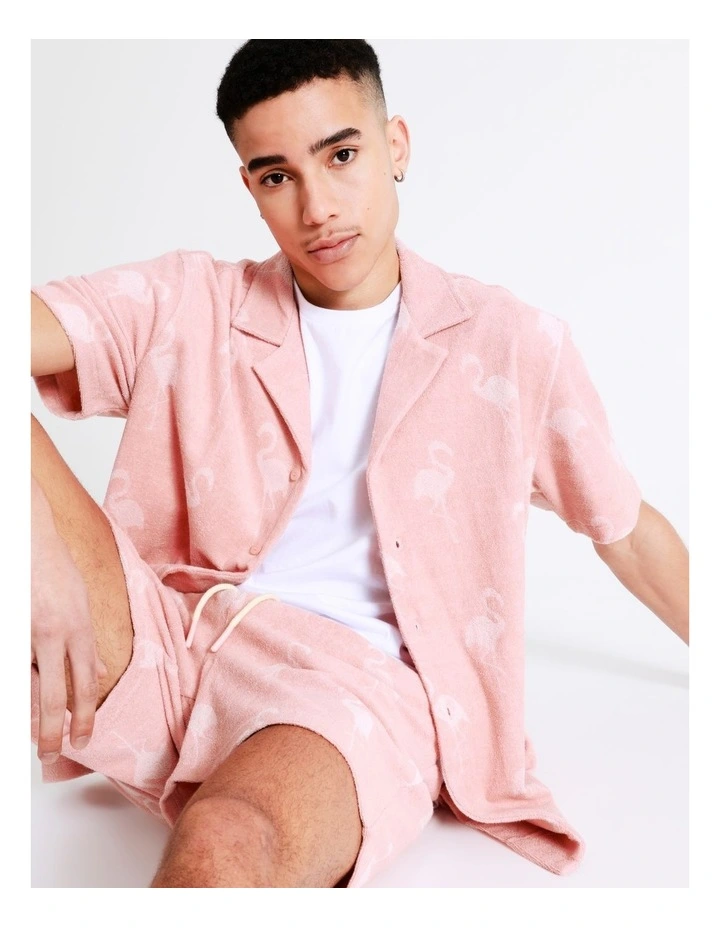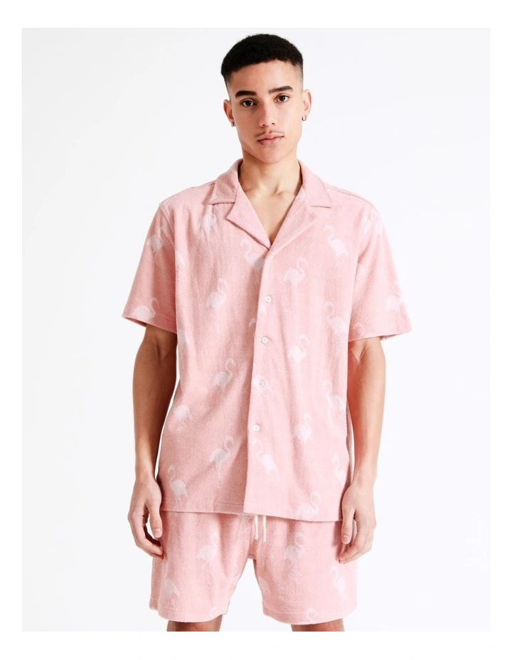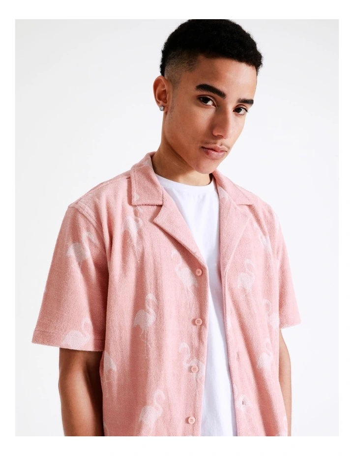 KenjiΒ Terry Towellin’ Jacquard Print Short Sleeve Shirt In Pink
