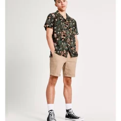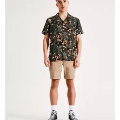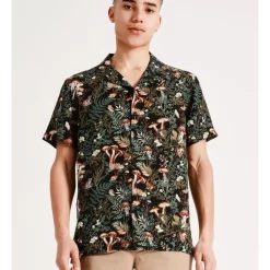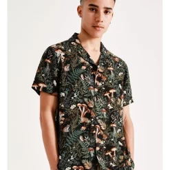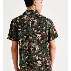 KenjiΒ Wonderland Print Short Sleeve Rayon Shirt in Black