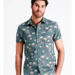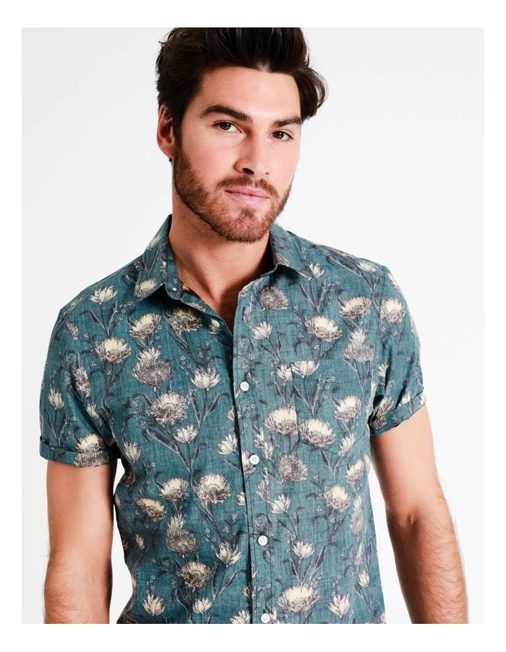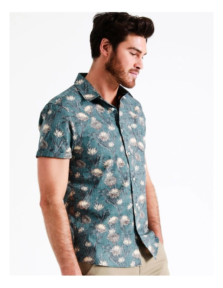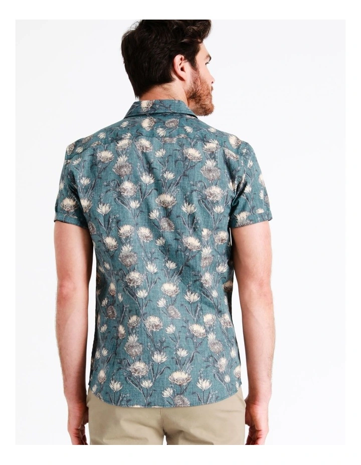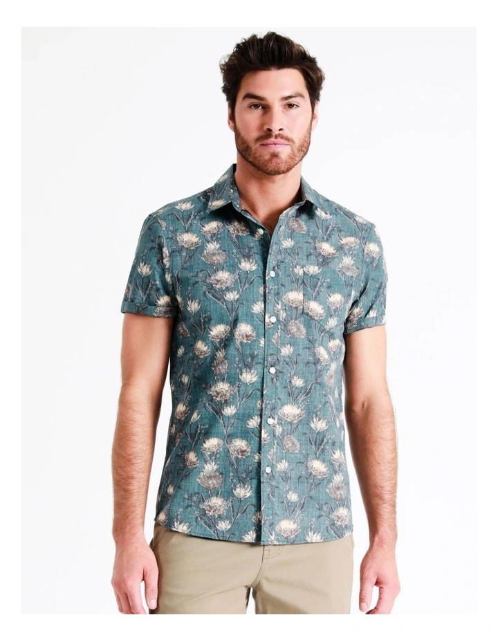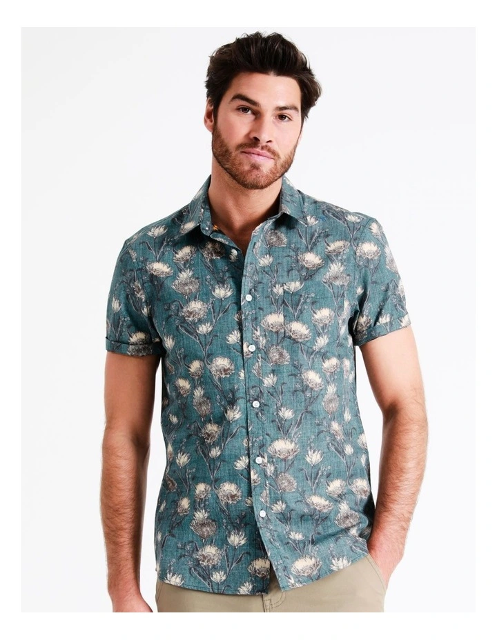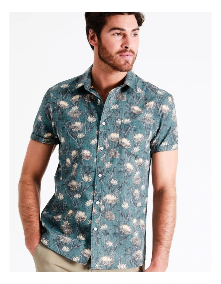 Elevate your personal style with a short sleeve shirt. Designed with a button up opening and collared neckline, this shirt has a vibrant all-over print to complement all your looks. Wear it with your favourite denim for the perfect everyday outfit.Β