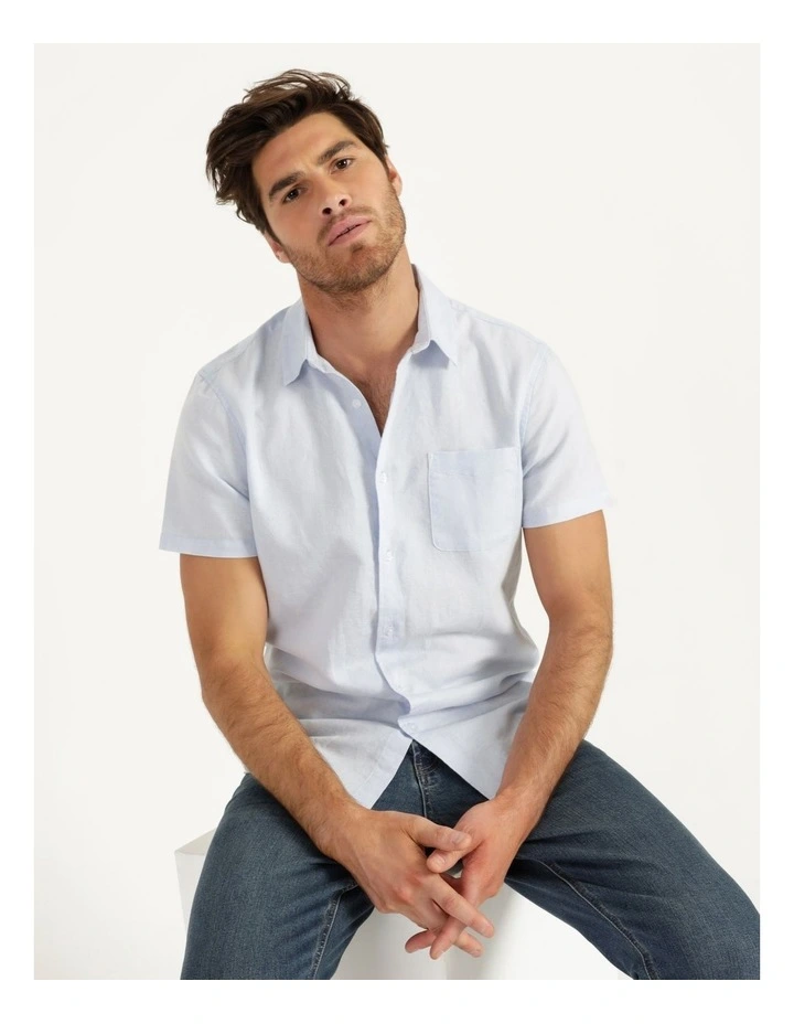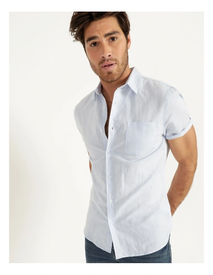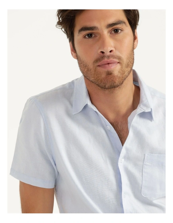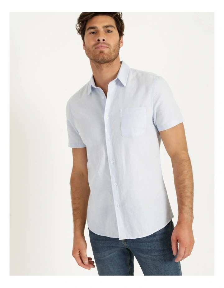 Maddox Lennon Linen Short Sleeve Shirt – Blue