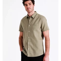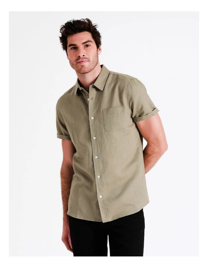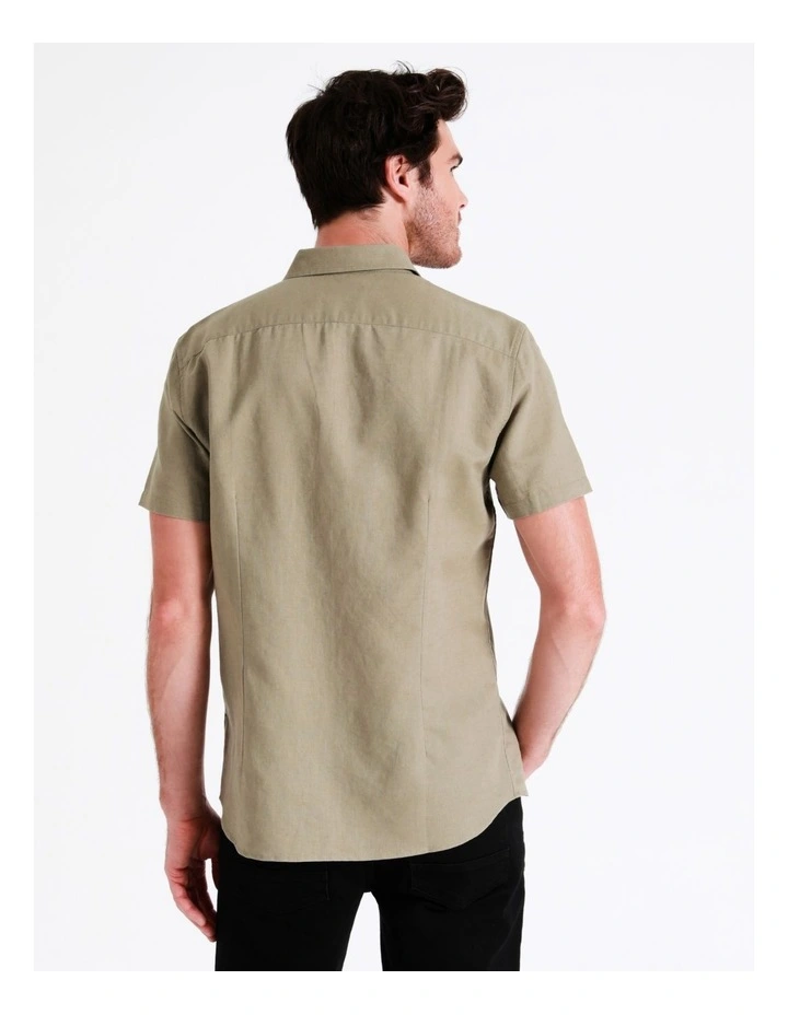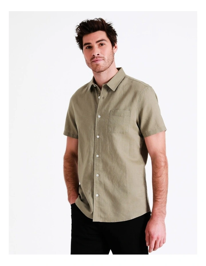 MaddoxΒ Lennon Linen Short Sleeve Shirt in Khaki