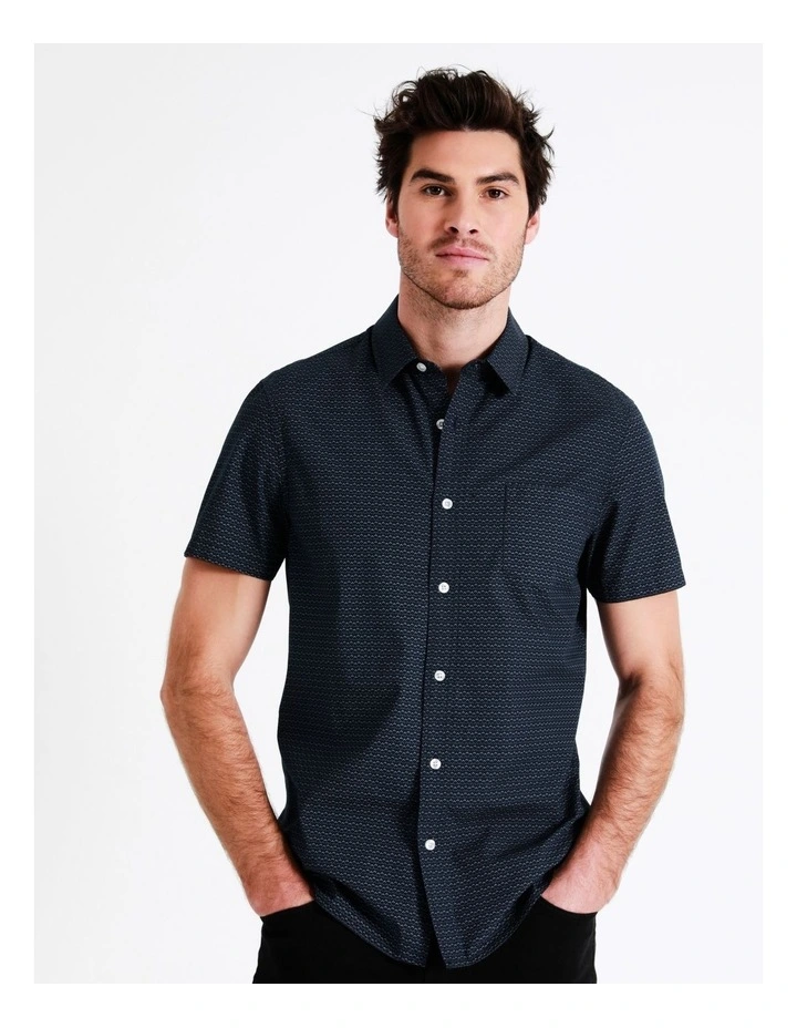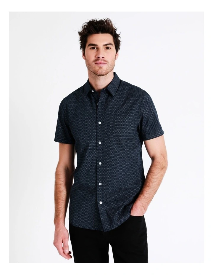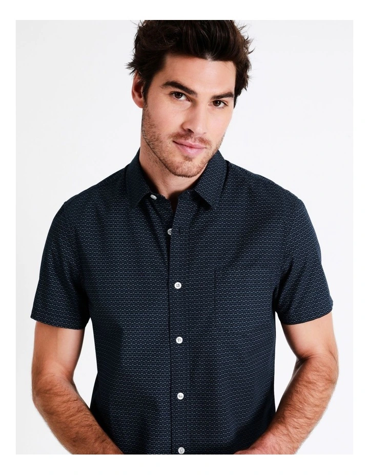 Go from desk to dinner in this short sleeve shirt. This shirt is made from cotton for comfort, alongside an all-over geometric print. A versatile shirt, you can wear this with any of your favourite jeans.Β