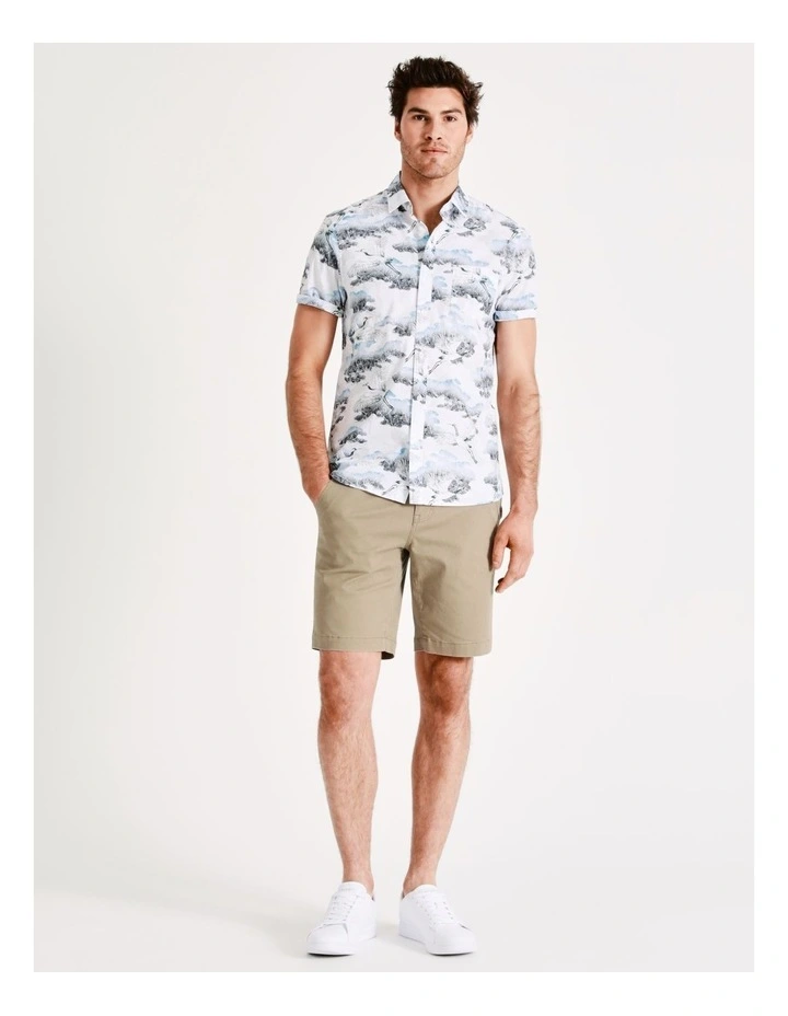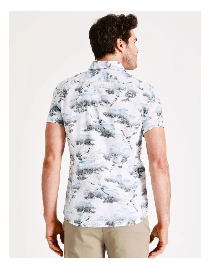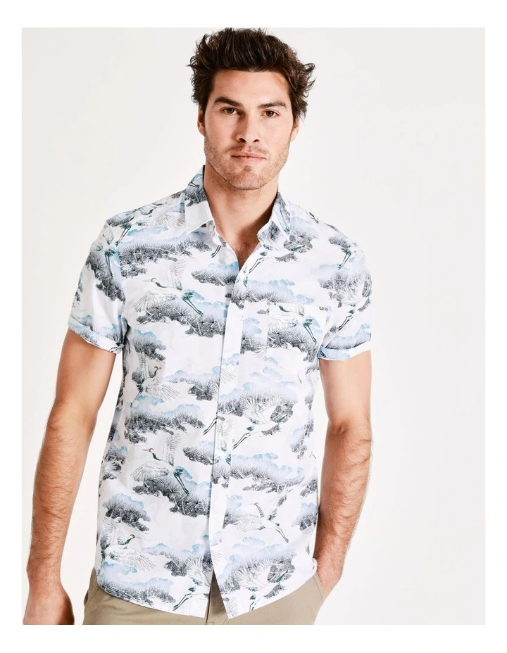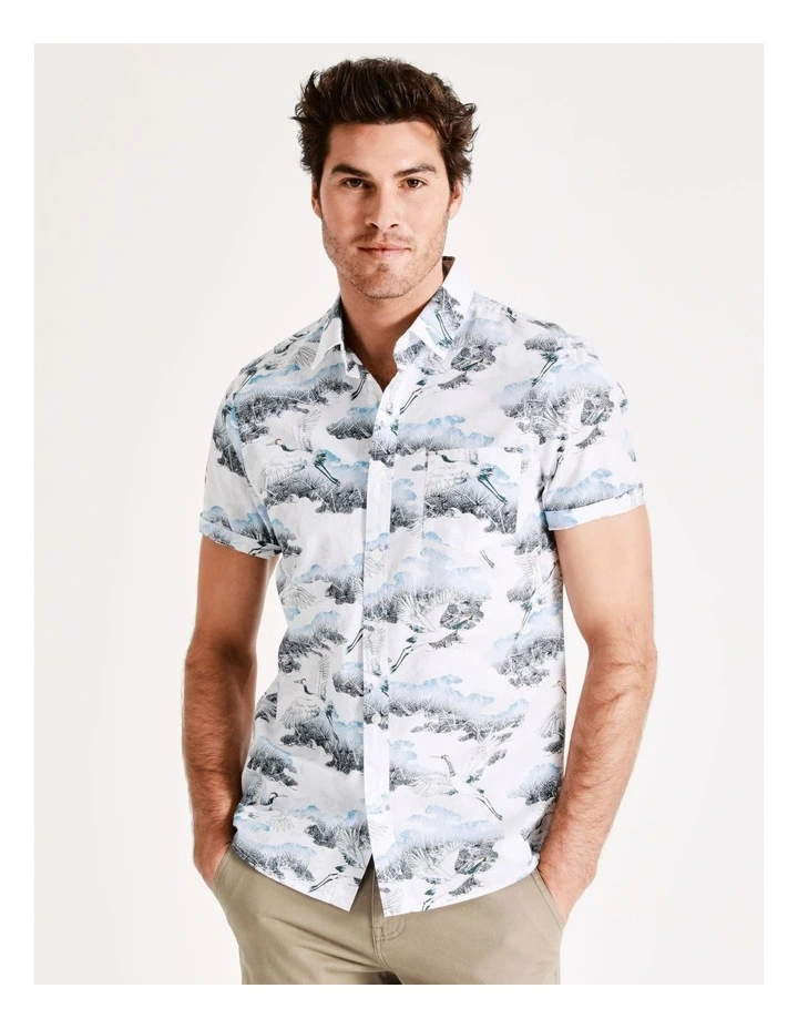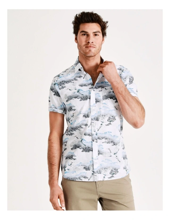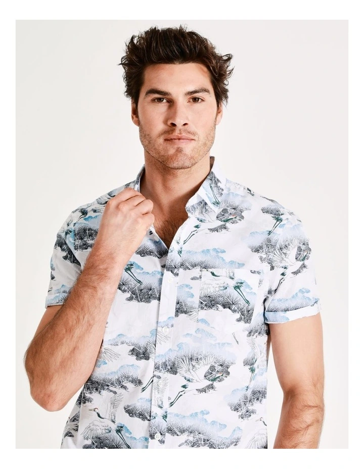 MaddoxΒ Oasis Print Short Sleeve Shirt In White
