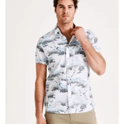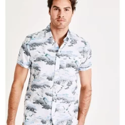 Elevate your look with a short sleeve shirt. This shirt has a regular fit, with a contemporary all-over print and a button up front. Wear it with your favourite denim for an on-trend fit.